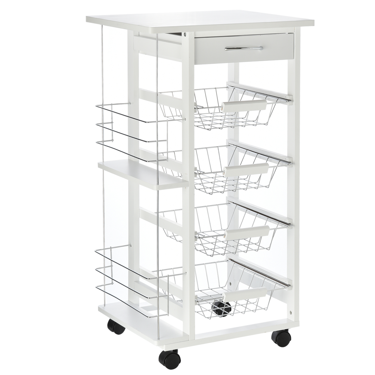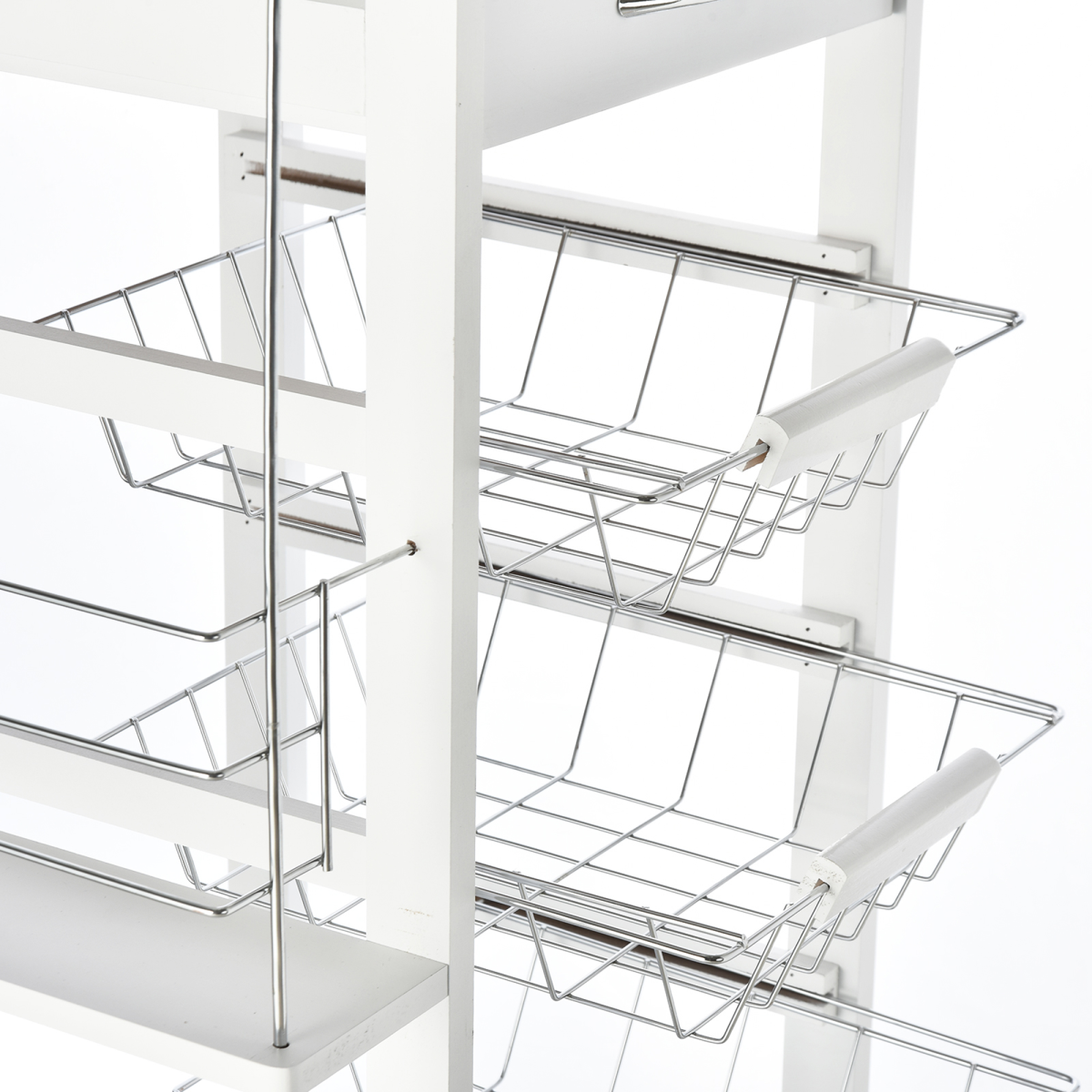 Made from a MDF and pine wood blend for durability and reliability Features one drawer, two side racks and four (removable) slide-out metal baskets: plenty of storage room