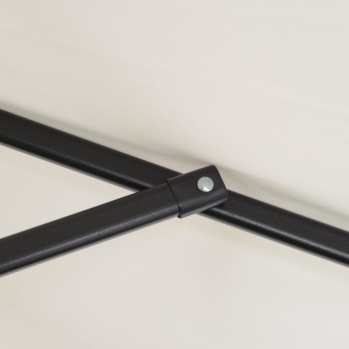 Aluminium frame to keep parasol upright, connected to the canopy with six steel ribs