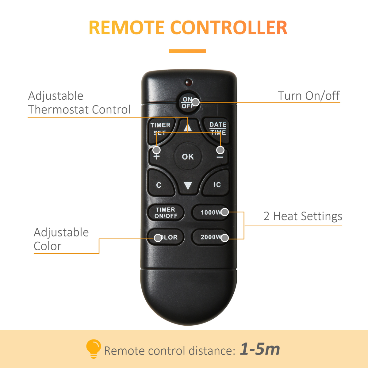 1000W Wall Mounted Tempered Glass Electric Fireplace Heater in Black"