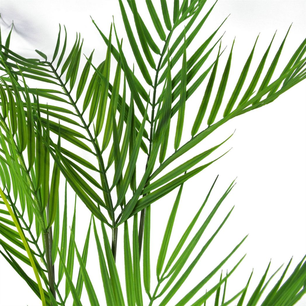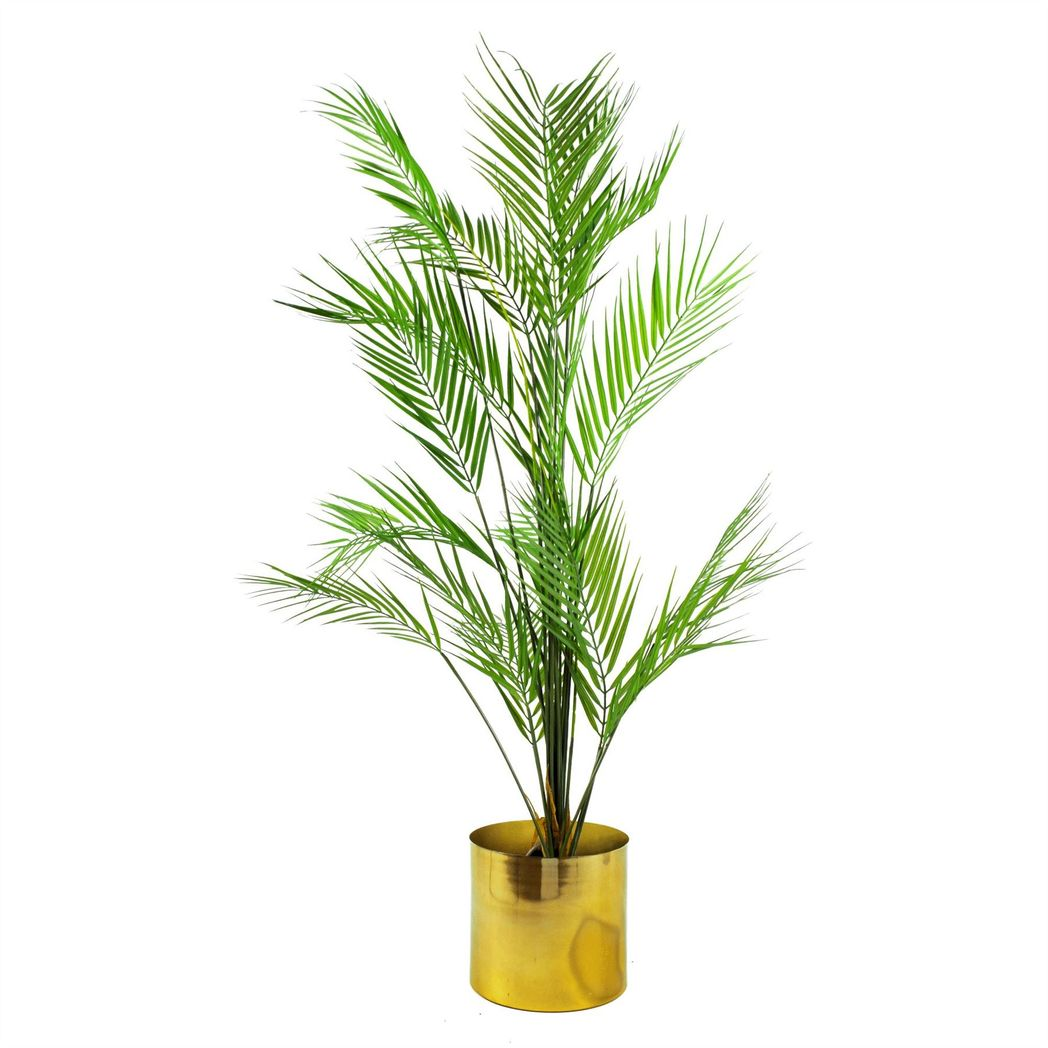 118cm Artificial Palm - Unpotted 11 Leaves 118cm from base to leaf tips. 11 realistic leaves and 2 green stems designed to look like new growth Wired stems so fully arrangeable to suit your space. Bare stem plant - no pot included- ready for you to pot or use in displays. We have these unpotted palms available in 75cm and 118cm sizes - if you are looking to create your own palm displays these look particularly nice when combined - see the example photograph of two bare stem palm plants potted into one of our gold planters. You can combine any number of these to make large and impressive tropical displays.