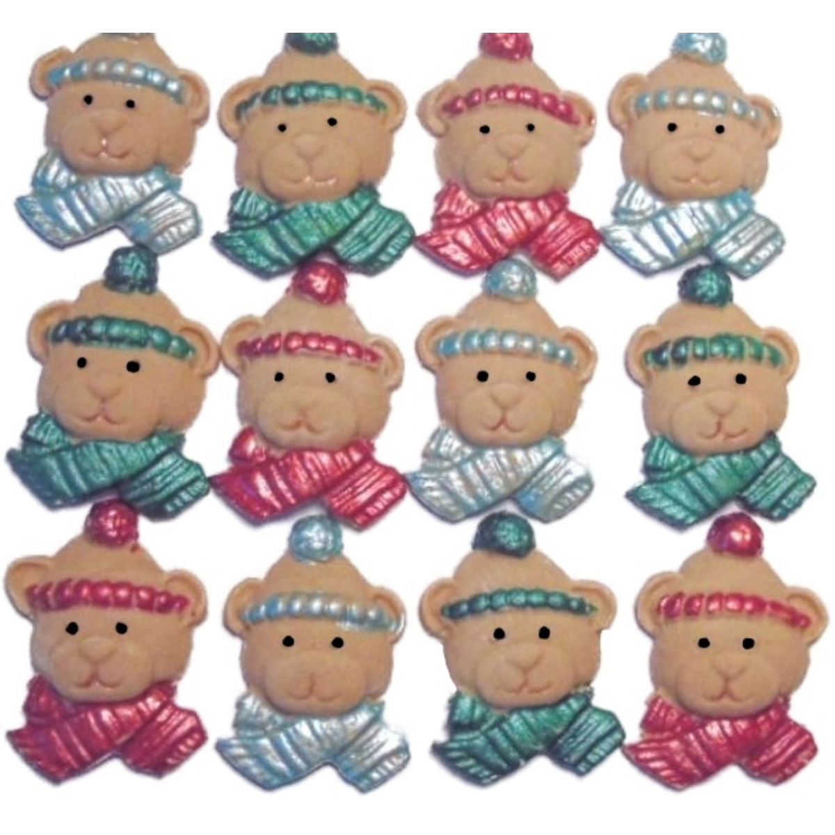 12 Christmas Bear Faces Edible Cupcake Cake Toppers
