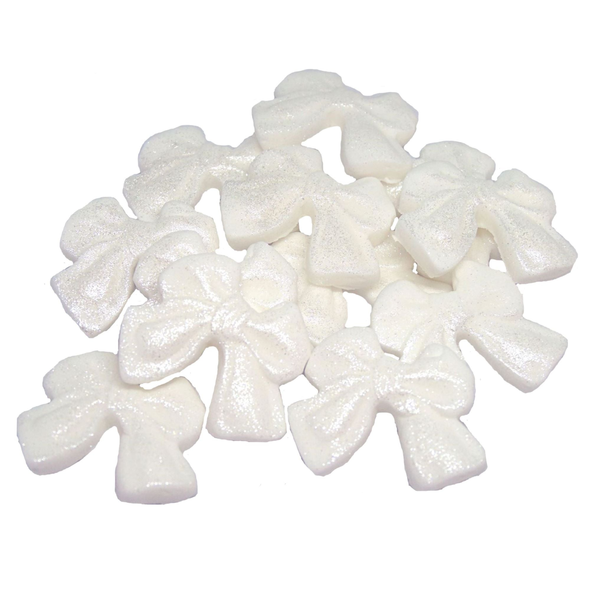Add a sparkling touch to your cupcakes and cakes with our 12 handmade edible glittered coloured cute bows cupcake toppers, in a variety of colours,