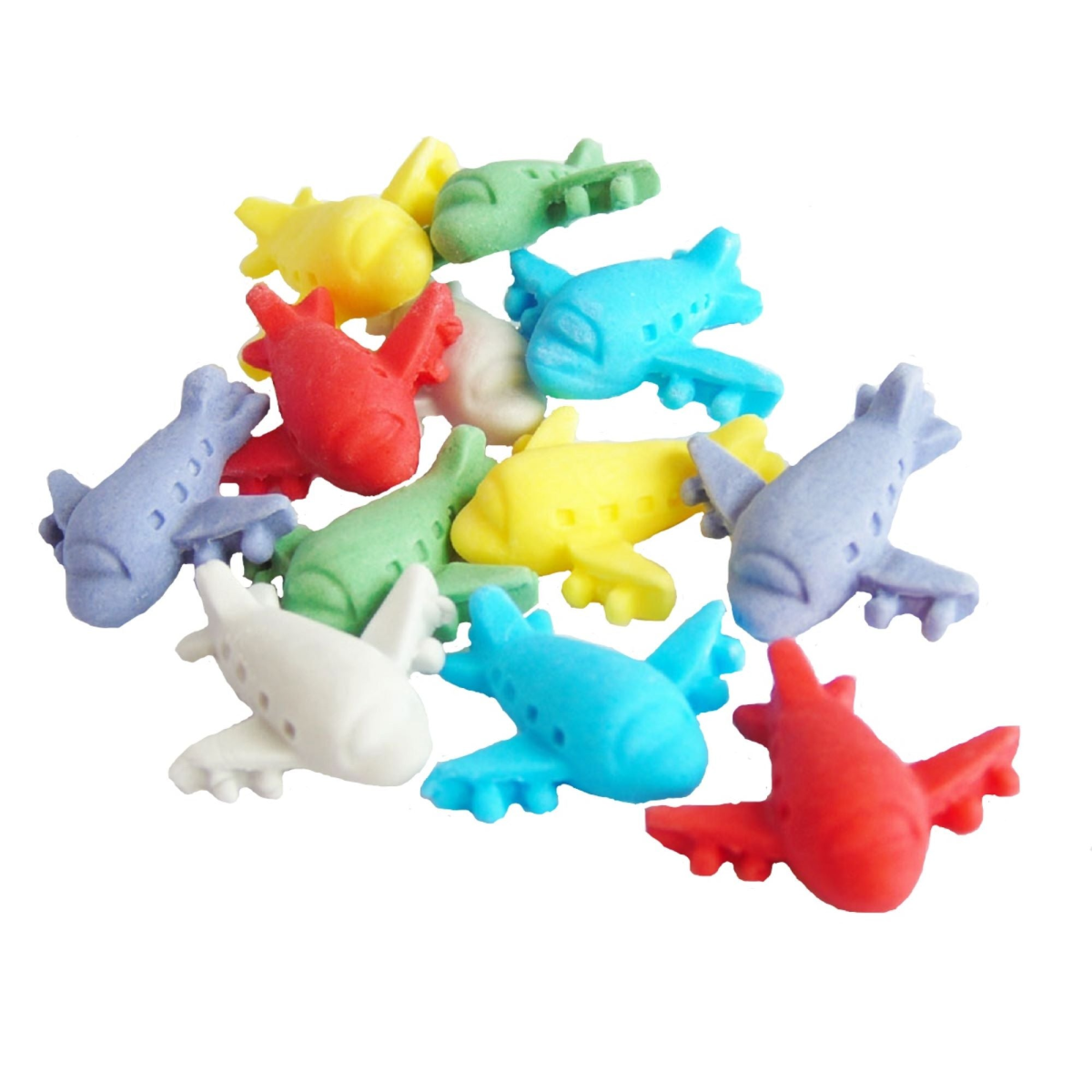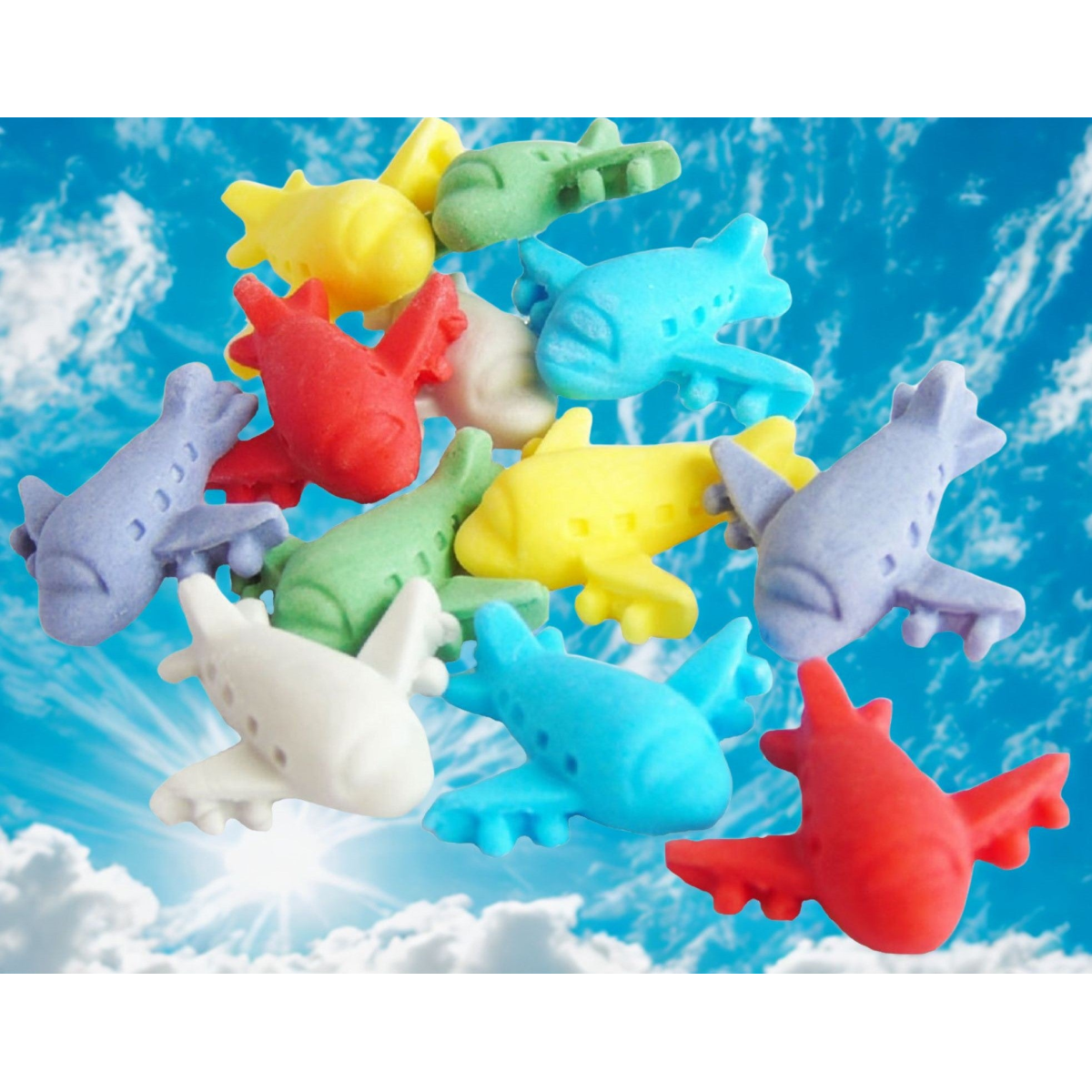 Delight the aviation enthusiasts in your life with our 12 handmade edible coloured aeroplane cupcake toppers. in vibrant colours and easy to your bakes.