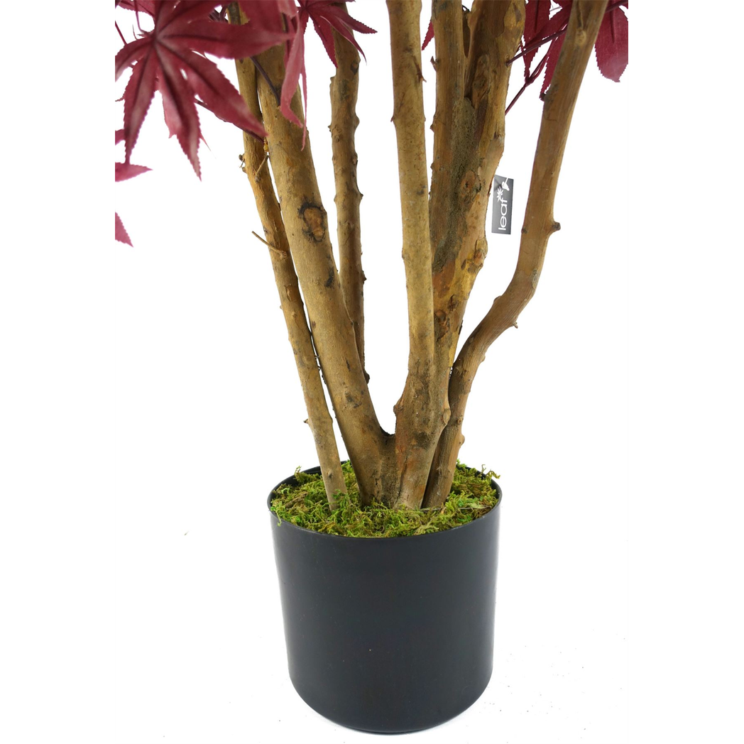 Artificial red Maple tree. This tree has silk leaves an entirely natural wood trunk design which make it look really realistic. As we have it arranged in our photos this measures 120cm x 90cm x 90cm - this is quite a wide large tree. The branches are wired and so the leaves can be shaped to fit your space. It comes potted in a weighted black plastic pot (measuring 18cm (d) x 14cm (h) approx.) These trees look most impressive if you put them inside a decorative planter and cover the top with gravel or soil.