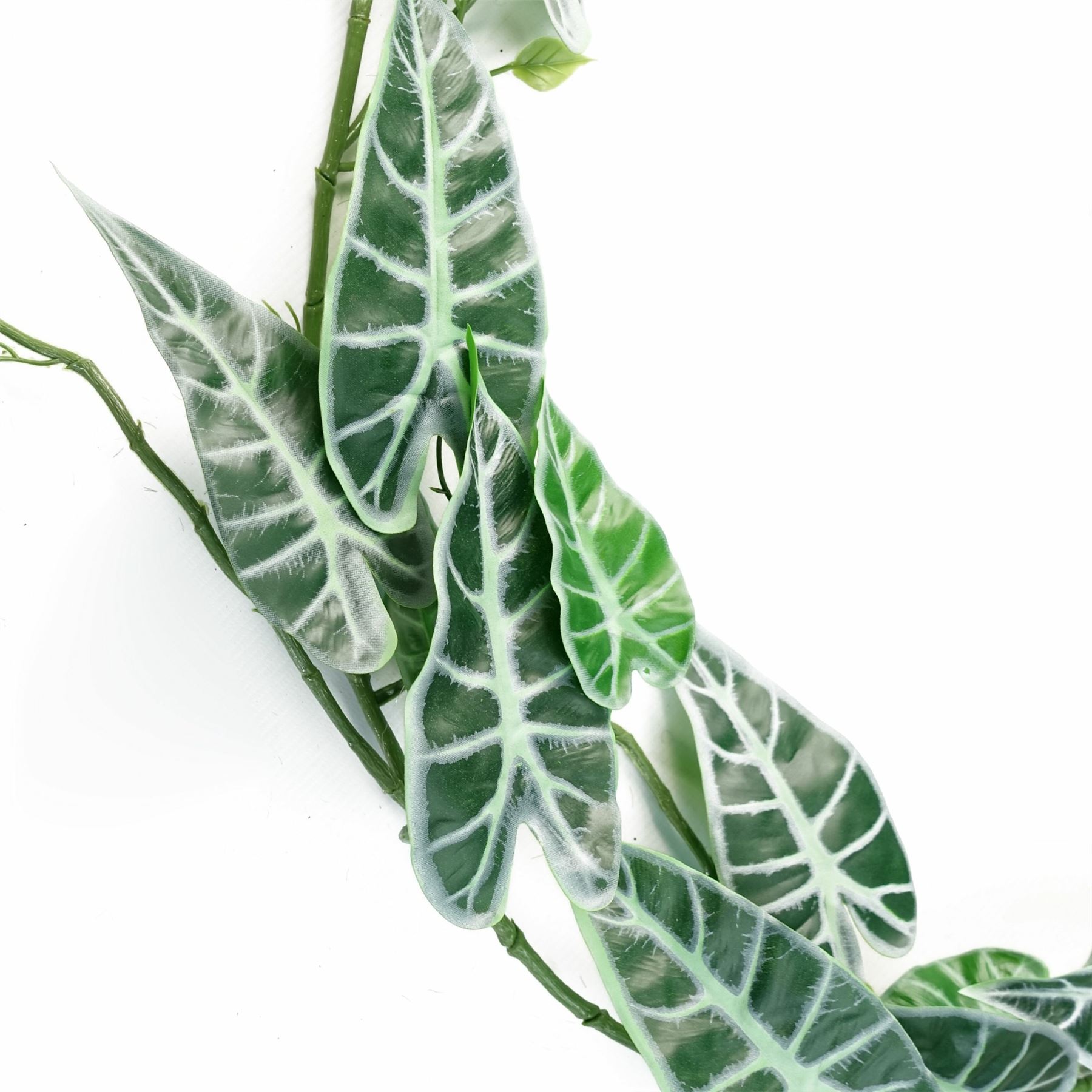 Genuine Leaf product. Realistic Amazonica trailing plants with large leaves. These can be combined with other plants for a larger display. No planter is included with this plant. Overall this measures 180cm x 30cm x 20cm as arranged in our photos. Part of our range of realistic plants and trees.
