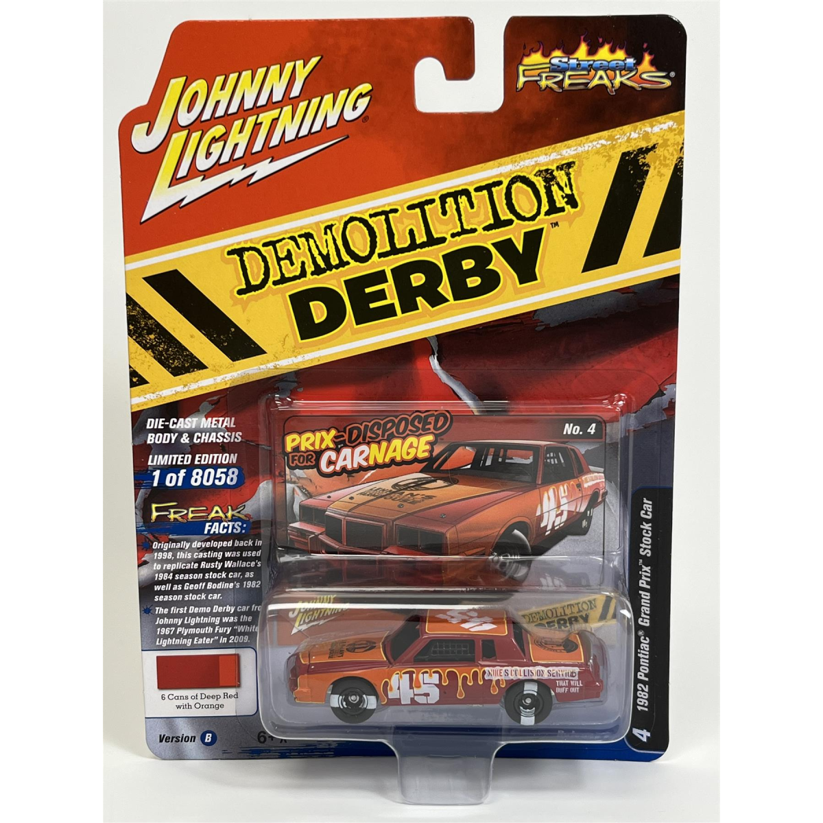1982 Pontiac Grand Prix Stock Car 6 Cans of Deep Red with Orange 1:64 Johnny Lightning JLSF024B
