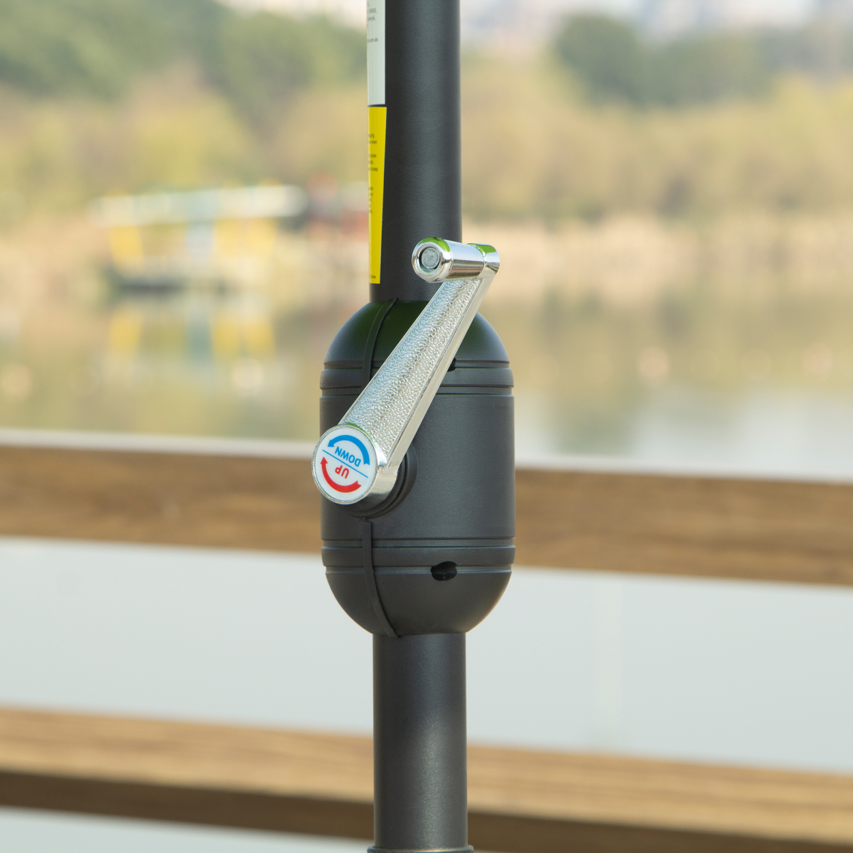 Powder coated aluminium pole is strong, with 8 ribs supporting the canopy connection
