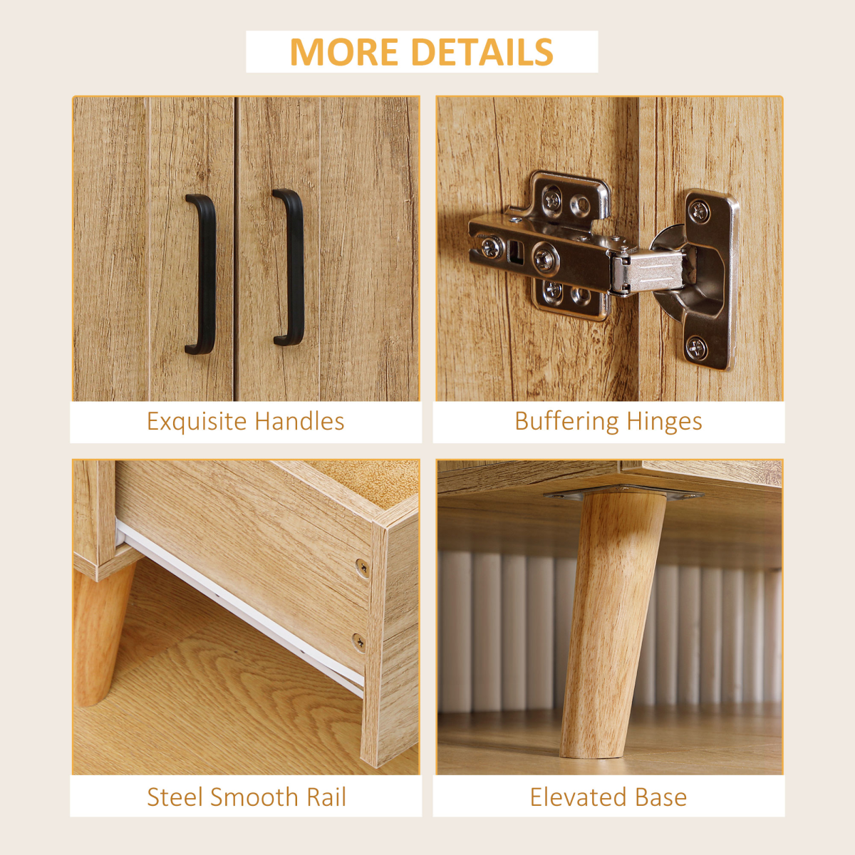 2 Door Wardrobe, Modern Wardrobe w/ 2 Drawer, Hanging Rail for Bedroom Natural