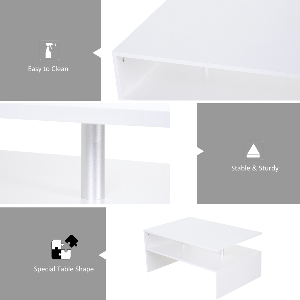 2-Tier Coffee Table Side/End Table Modern Rectangular Design White