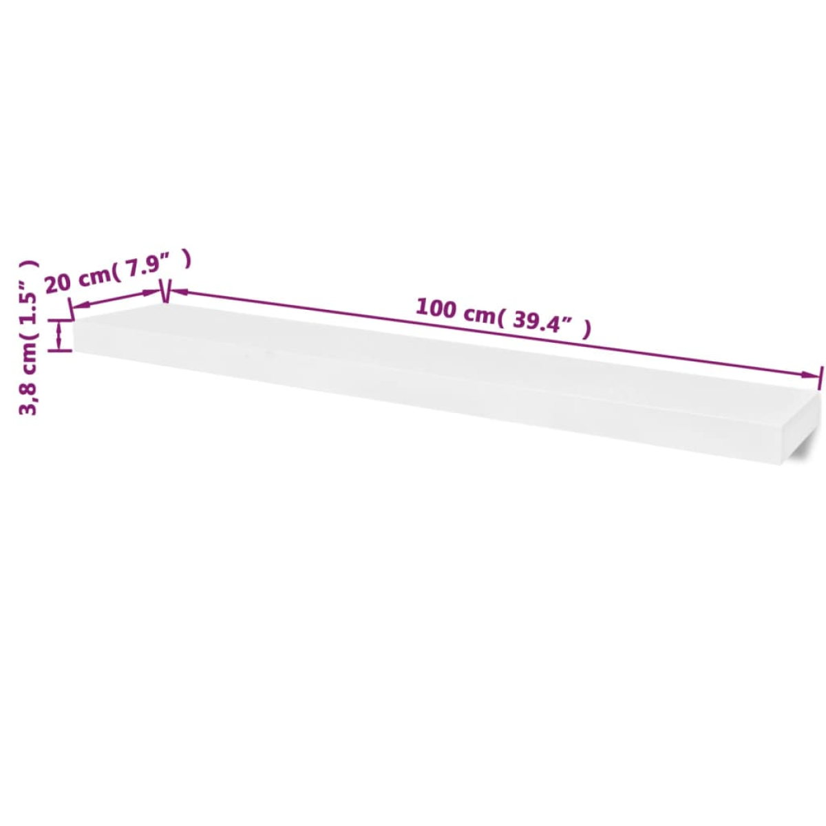 2 White MDF Floating Wall Display Shelves Book/DVD Storage
