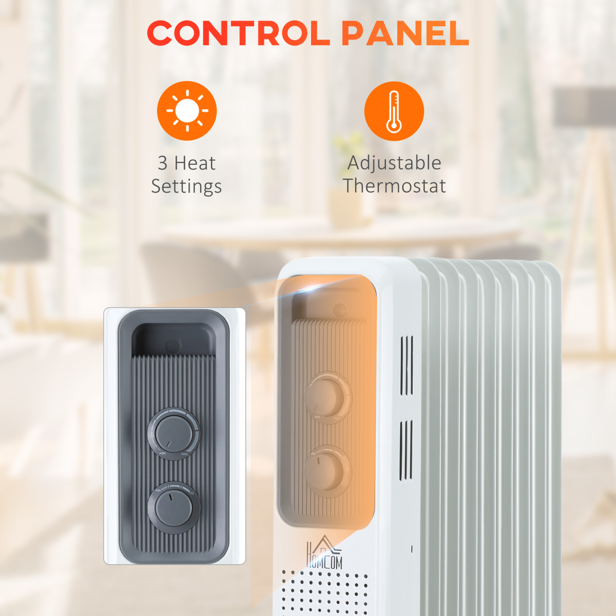 2180W Oil Filled Radiator, 3 Settings, Safe Power-Off, 9 Fins Radiator