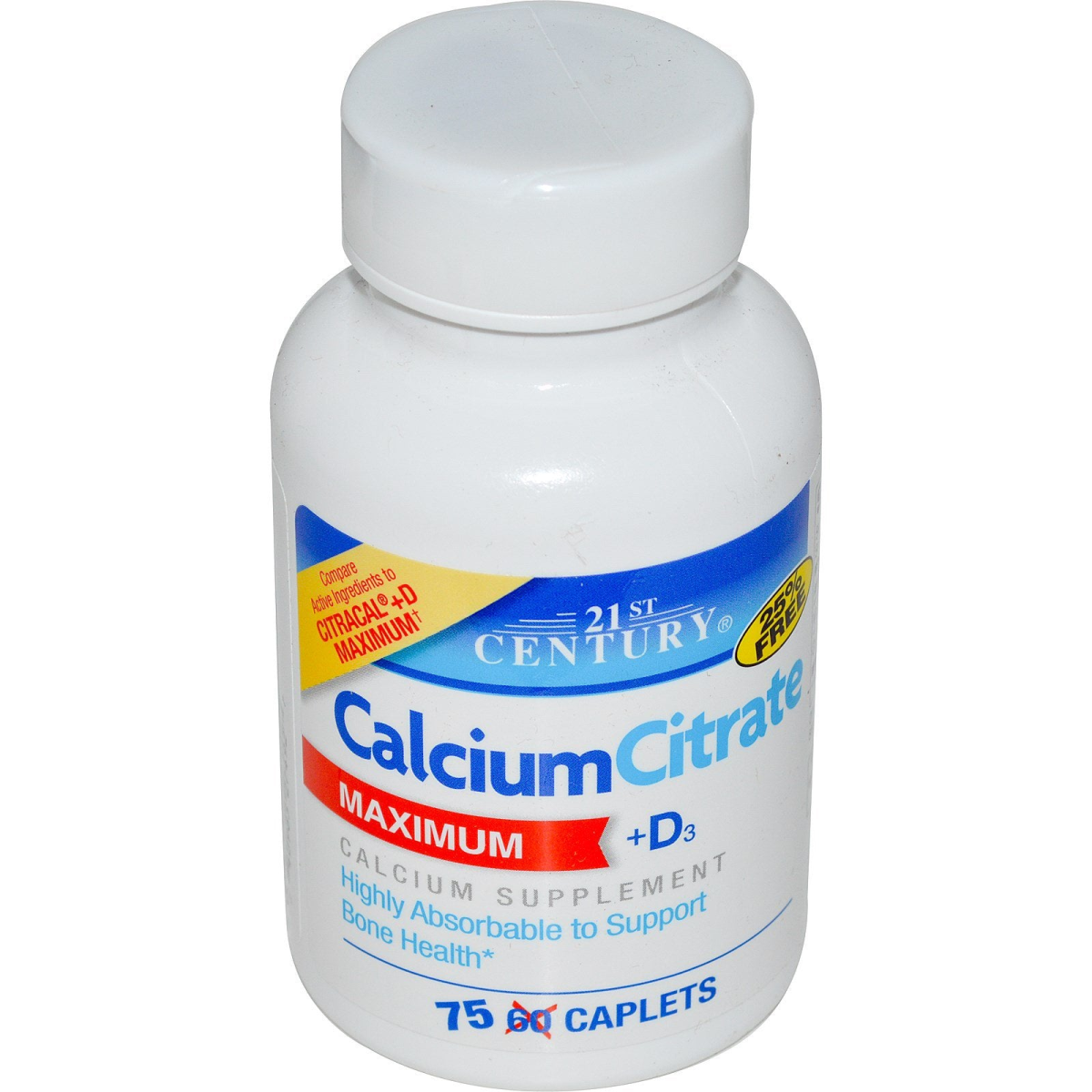 21st Century, Calcium Citrate + D3, 75 Caplets