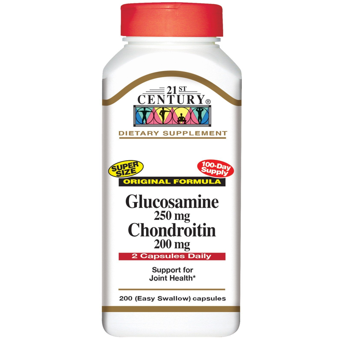 Dietary Supplement Super Size 100-Day Supply 2 Capsules Daily Support for Joint Health Guaranteed Quality-Laboratory Tested Glucosamine and Chondroitin are two of the most common nutrients used to support joint health. 21st Century combines these two ingredients for nutritional joint support. 21st Century offers the highest quality ingredients produced to strict standards for support of good health.