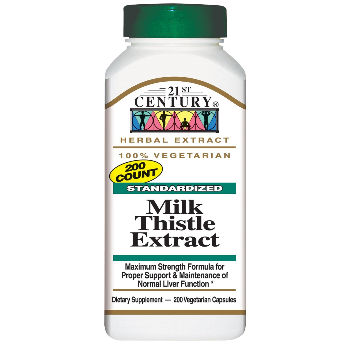 Herbal Extract 100% Vegetarian 200 Count Maximum Strength Formula for Proper Support & Maintenance of Normal Liver Function Dietary Supplement Laboratory Tested - Guaranteed Quality 100% Vegetarian Formula 21st Century Milk Thistle Extract (Silybum marianum) is grown wild in Europe and America and has been used as a powerful health tonic for over 2000 years. Silymarin, the active complex found in Milk Thistle Extract, is a powerful antioxidant. 21st Century's standardized herbal extracts are thoroughly tested to assure high quality standards are met.