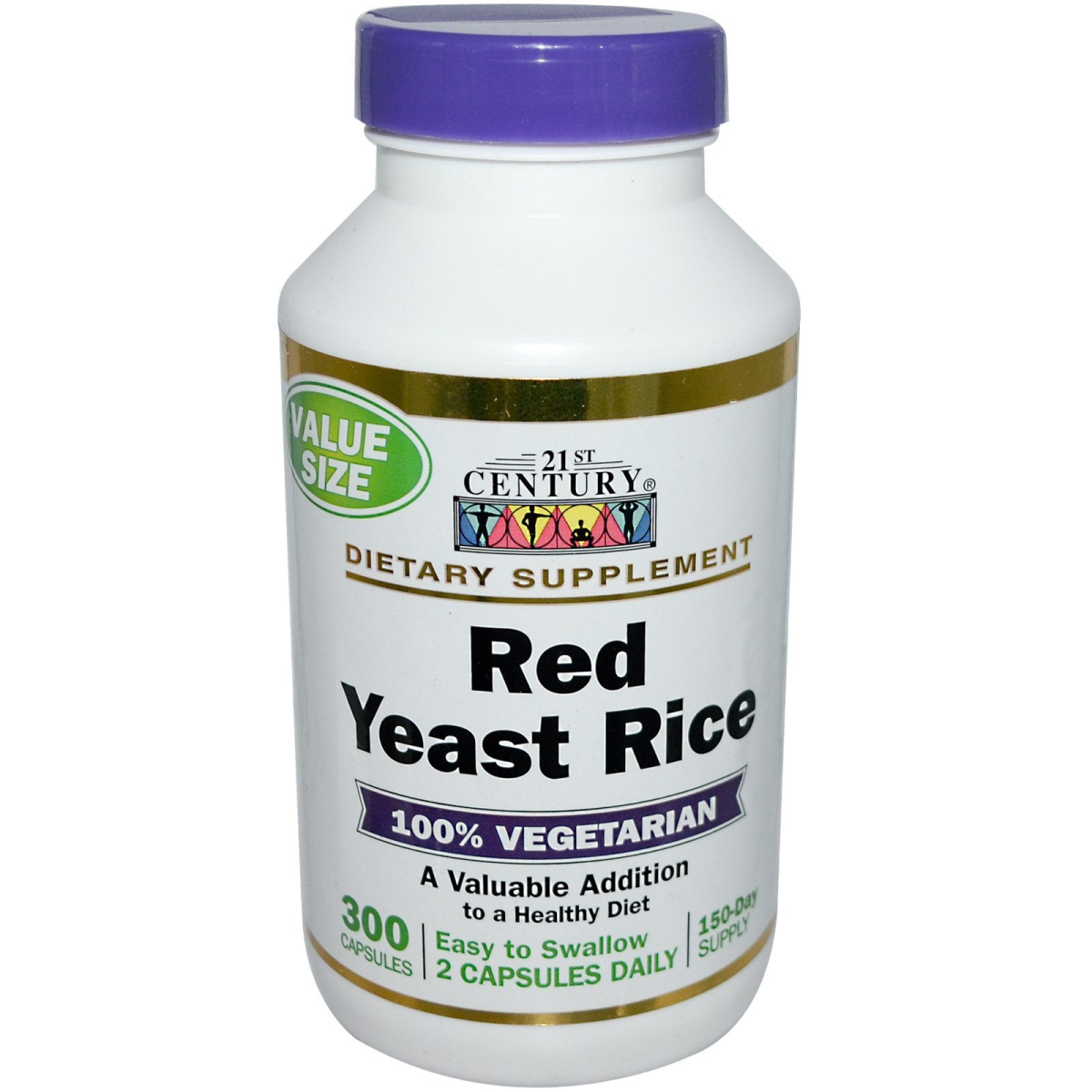 Value Size Dietary Supplement 100% Vegetarian Formula A Valuable Addition to a Healthy Diet Easy to Swallow 2 Capsules Daily 150-Day Supply Red Yeast Rice (Monascus purpureus) has been used for centuries in the Chinese diet as a staple food and for its health benefits. 21st Century's Red Yeast Rice has been quality tested to assure maximum benefit.