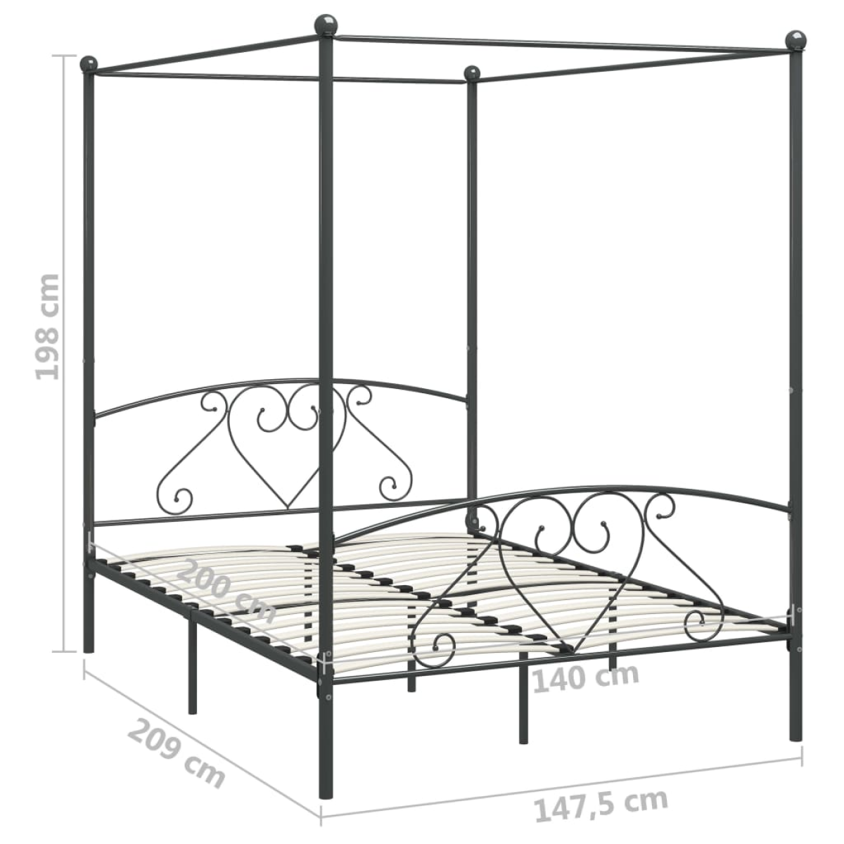284443 vidaXL Canopy Bed Frame without Mattress Grey Metal 140x200 cm