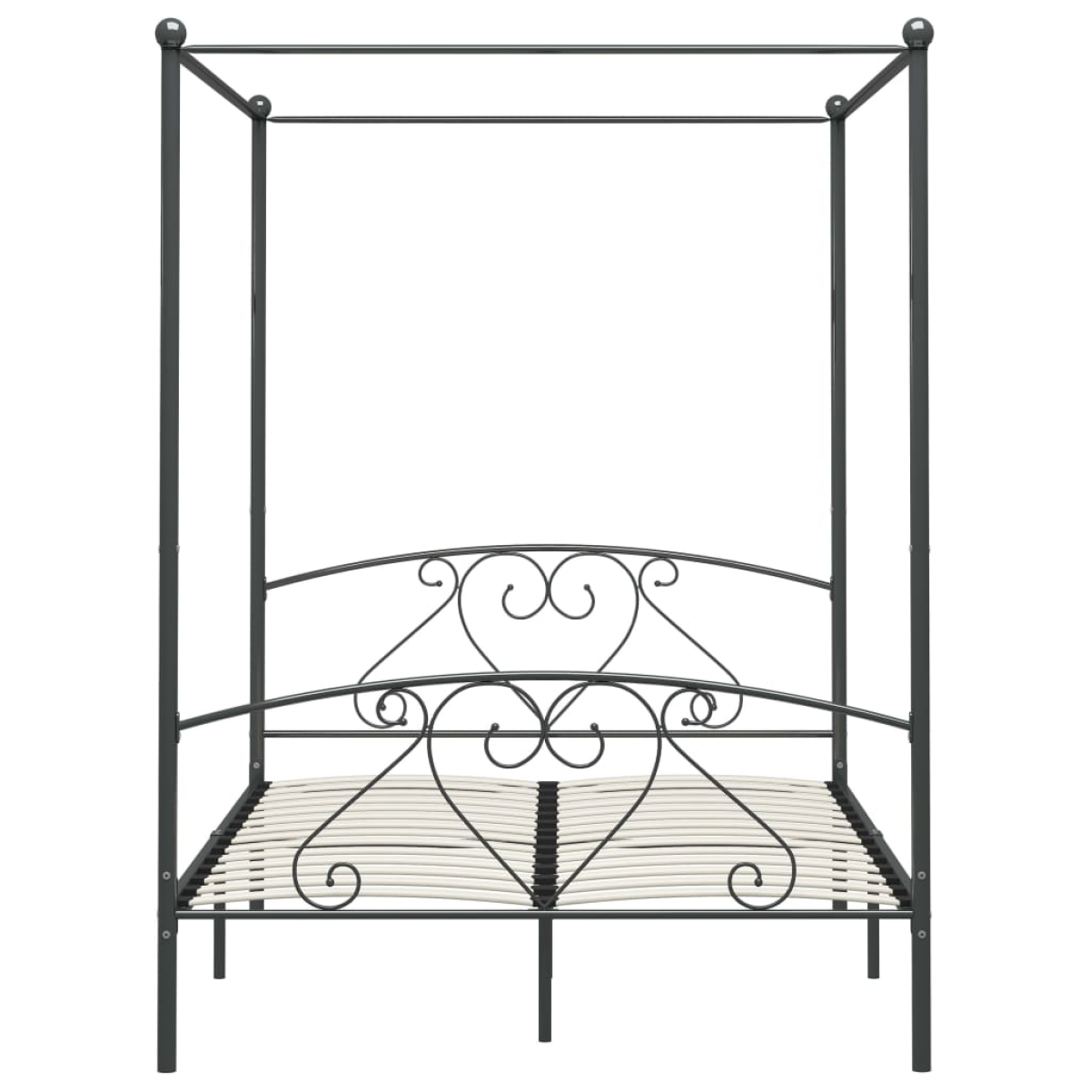 284444 vidaXL Canopy Bed Frame without Mattress Grey Metal 160x200 cm