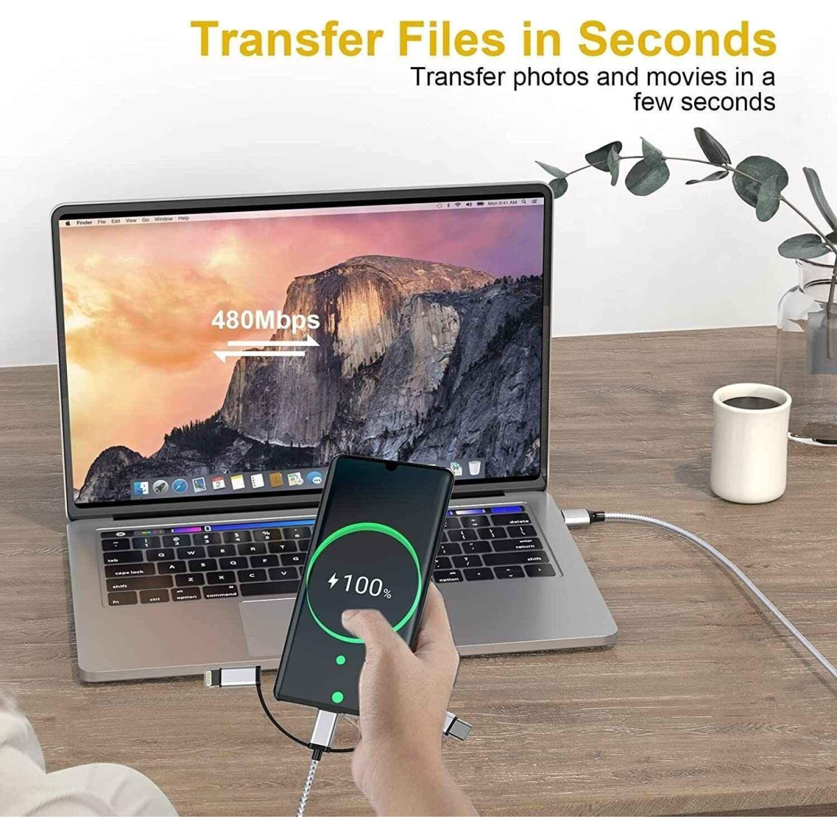 • Data Sync 3 in 1 Universal Charger Cable This 3 in 1 Universal cable is Mfi certified Apple lightning Cord. Upgrade both Lightning/USB-C and Micro USB port are support data transfer and the speeds up to 480Mbps. Transfer your data easily with any devices. MFI Certified have no error message pops up in your iphone/pad.fast charging cable cord for Samsung android phone.