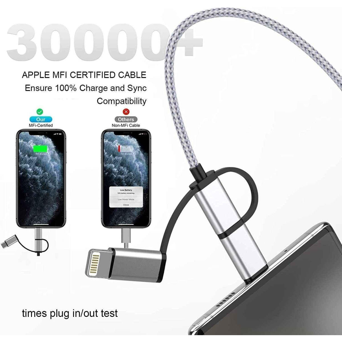 3 in 1 Cable, Lightning Type C Micro USB Charging Cable Adapter MFI Certified