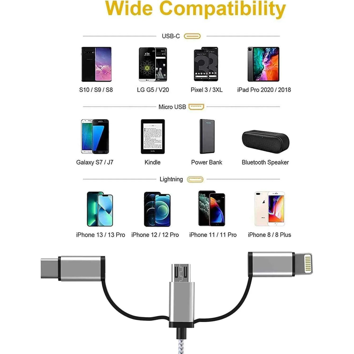 6ft Universal Phone Charger Cord and 3-in-1 Design