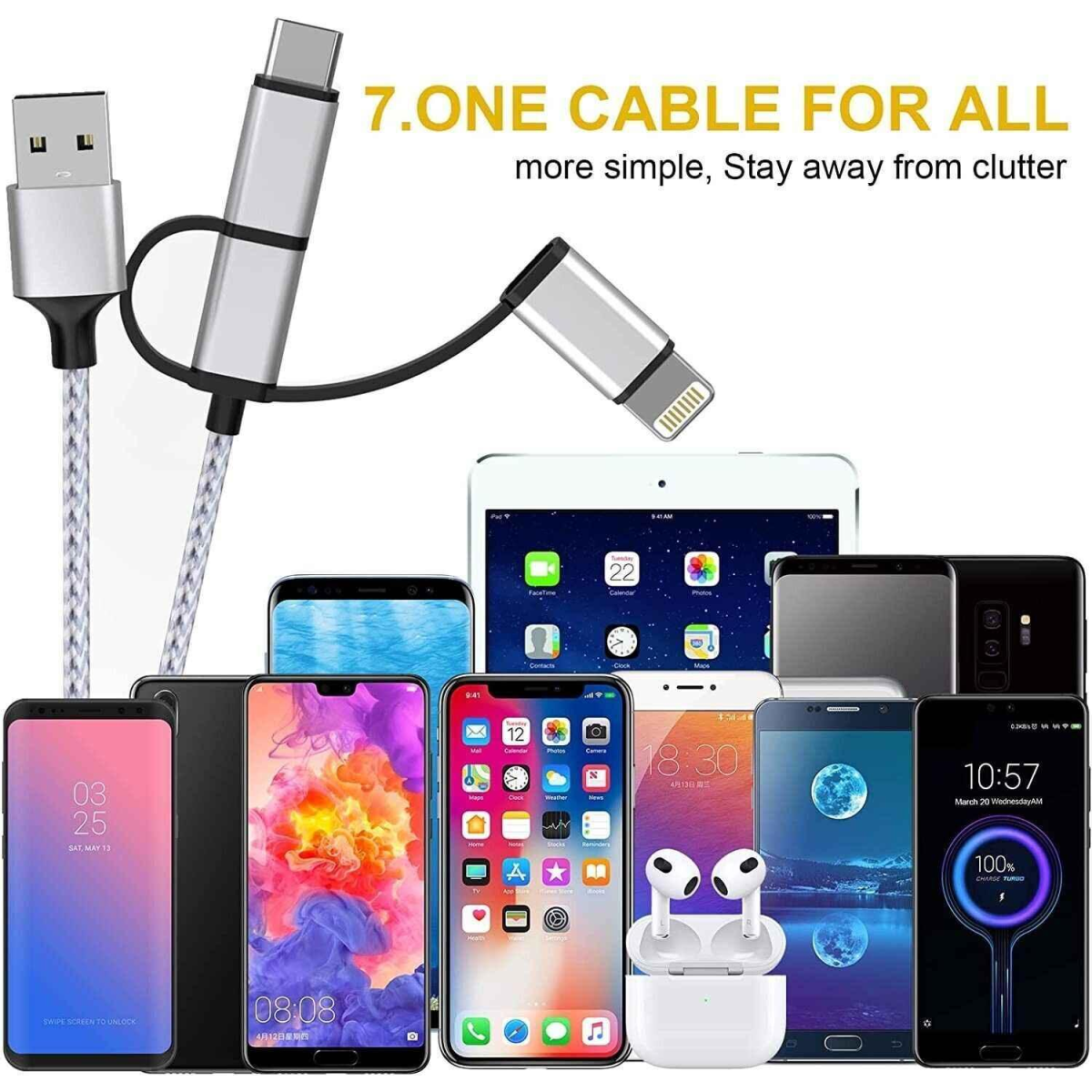 BuytoGive | Buy now | 3 in 1 Cable, Lightning Type C Micro USB Charging Cable Adapter MFI Certified