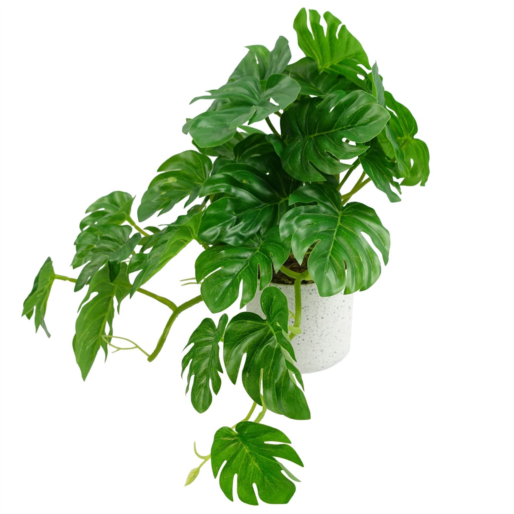 A realistic plant, measuring 30cm tall x 30cm wide when arranged as shown in our photos. It comes fully potted in a plastic weighted pot which measures 9cm (d) x 10cm (h) approx. Requires no maintenance or watering and is ready to display straight out of the box. Entirely artificial components. Comes in a decorative plastic weighted pot as shown. Leaf Design UK product.