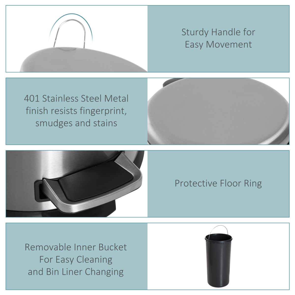 - "30L Pedal Bin, 29.2 cm Black/Silver"