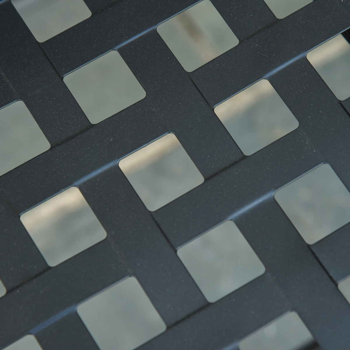 Grid cut-out chairs prevent water building up on the seats