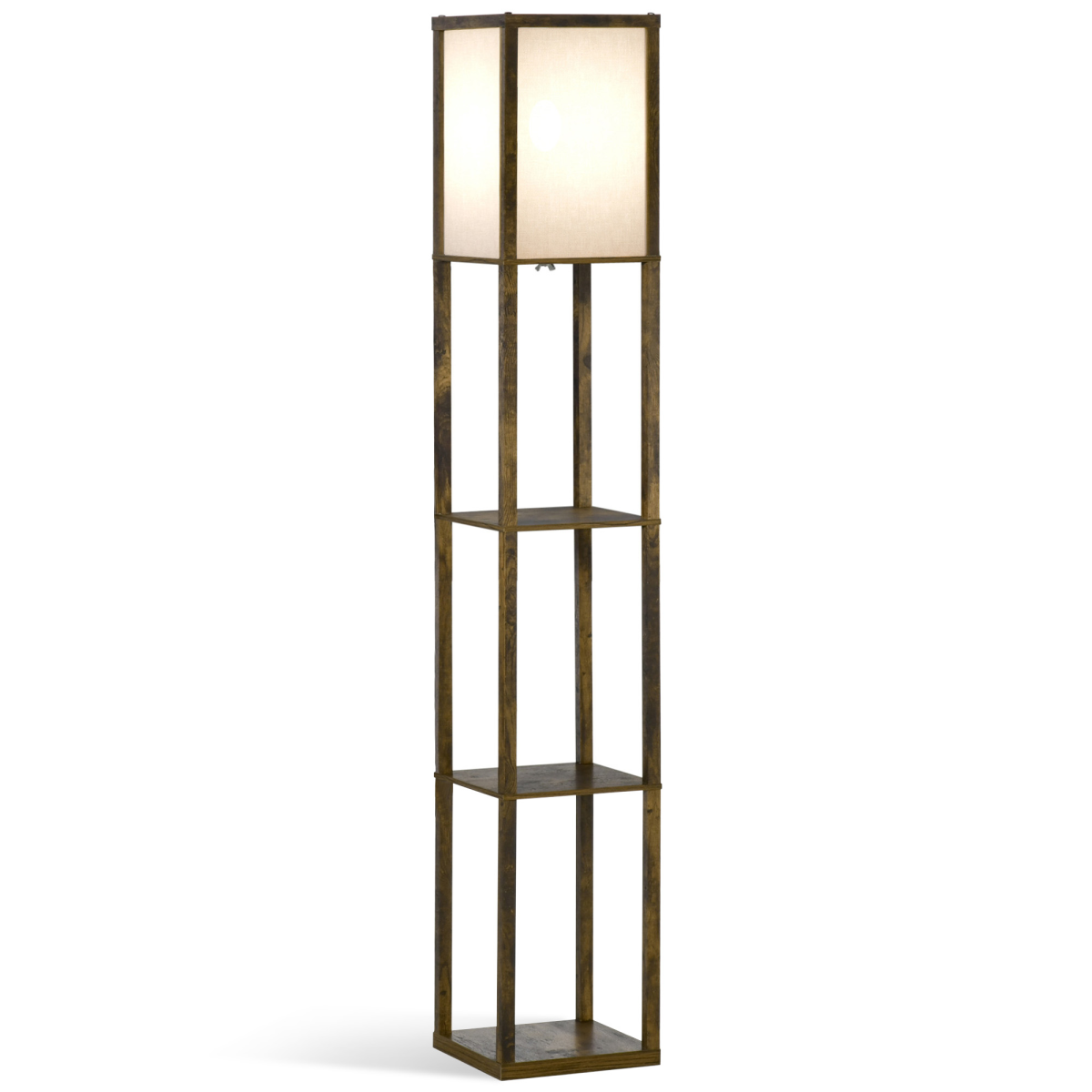 4-Tier Floor Lamp, Floor Light with Storage Shelf, Brown 3-Tier