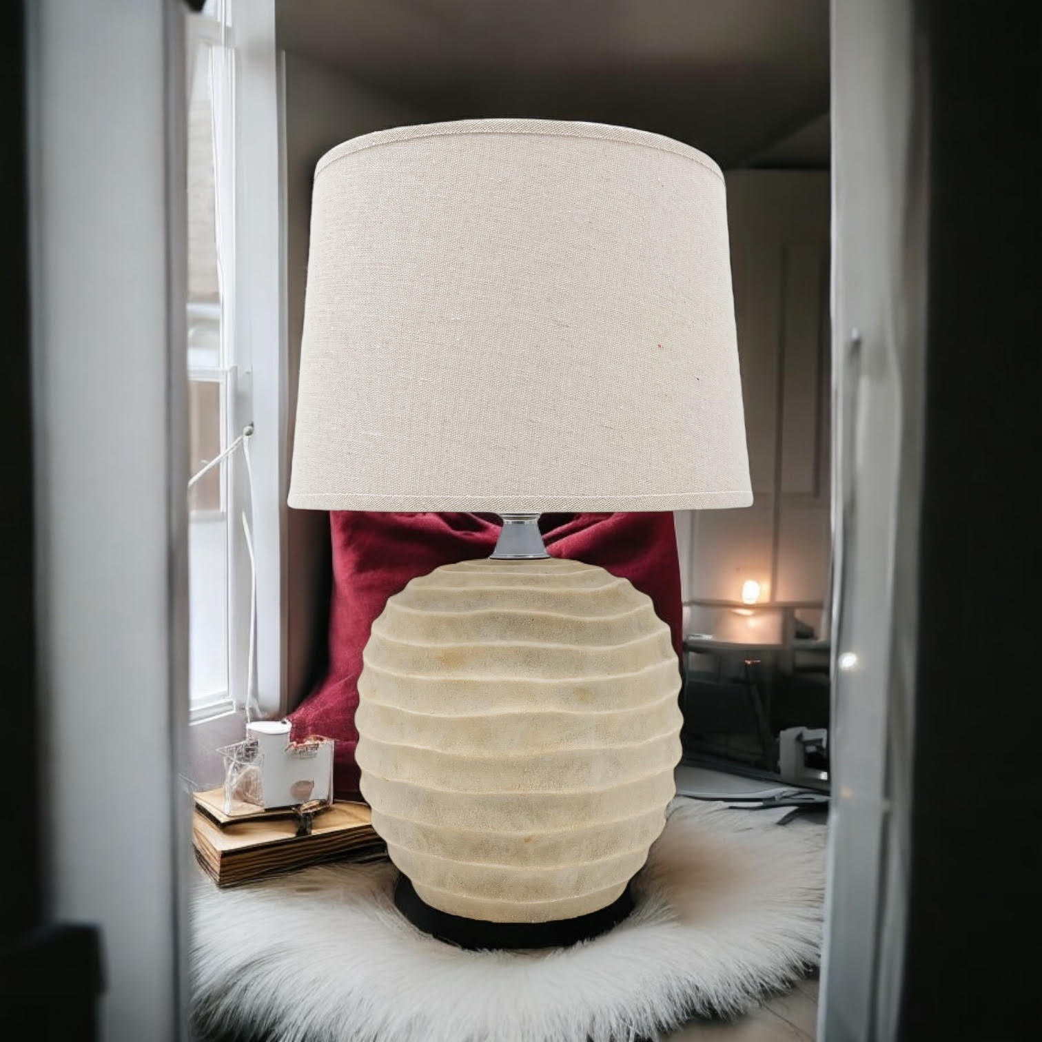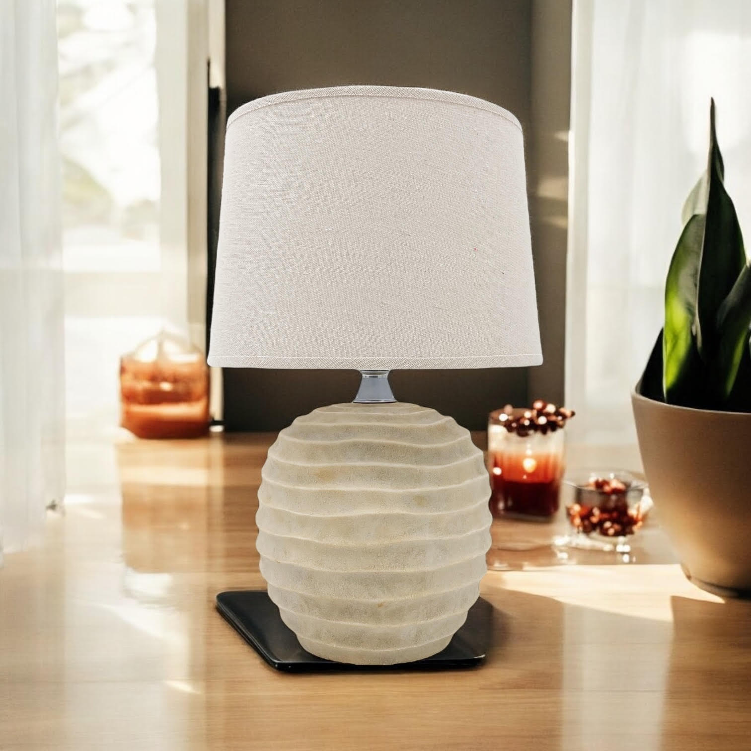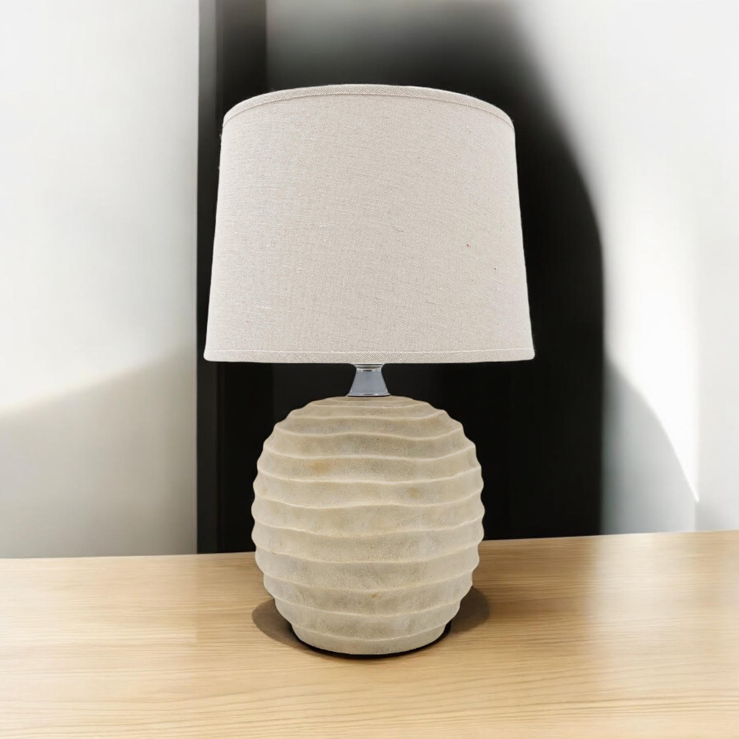 A traditional design table lamp base and shade. The lamp is individually switched by an inline rocker switch and is double insulated to allow for safe use without need of an earth wire. Great for lighting in any setting and ideal in a living room or bedroom., In Line switchHigh Quality Shade