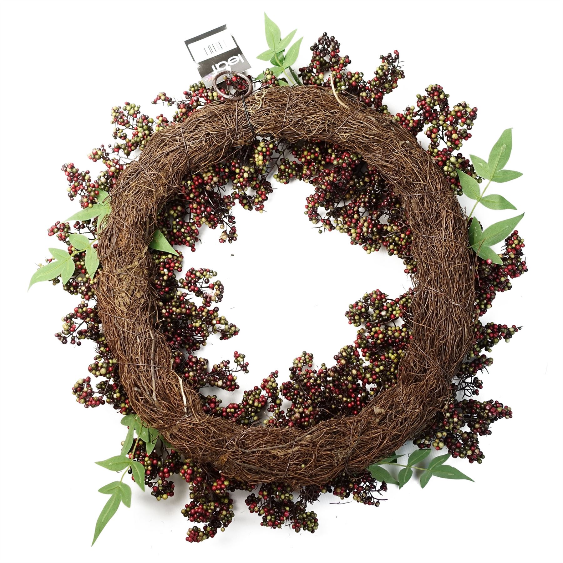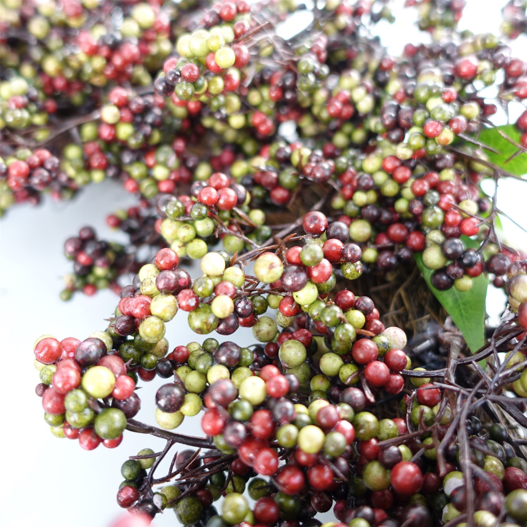 55cm Large black red berry wreath. Size including foliage when arranged is 55cm diameter. Woven base measures 45cm. Ideal for all door sizes. We have matching garlands available if you need a set.