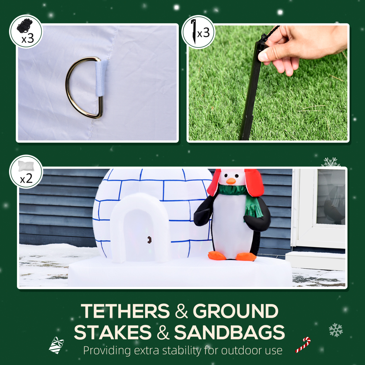 5ft Christmas Inflatable Penguins Wearing a Scarf with Ice House In & outdoors