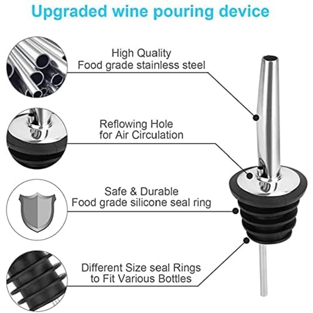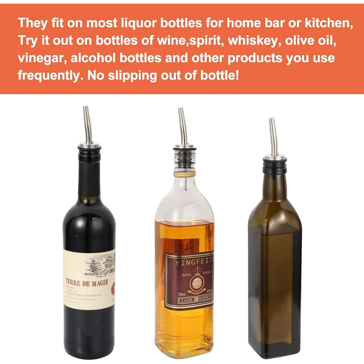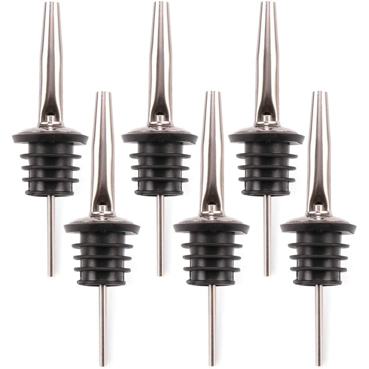 6 Spirit Bottle Pourers Freeflow Olive Oil Drizzler Pourer - Stainless Steel Silver - Oil Pourer - Drink Pourers Spirits - Oil Bottle Drizzler - Pouring Spout - Oil Bottle Pourer Spout - Optics