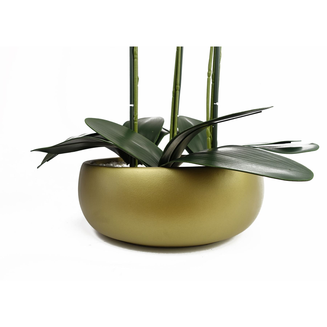 60cm Orchid with Ceramic Planter from Botanik. Renowned for our expertise in orchids, we offer a selection of highly realistic options in various colors. This particular orchid boasts lifelike PVC flowers and is elegantly presented in a stunning planter. Admire its dimensions of 60cm x 40cm x 40cm, with wired stems that can be artfully arranged to suit your space. Delight in the included pot, measuring 26cm (d) x 10cm (h), crafted from luxurious ceramic to enhance the overall aesthetic. Display this masterpiece straight out of the box and elevate your decor with sophistication.