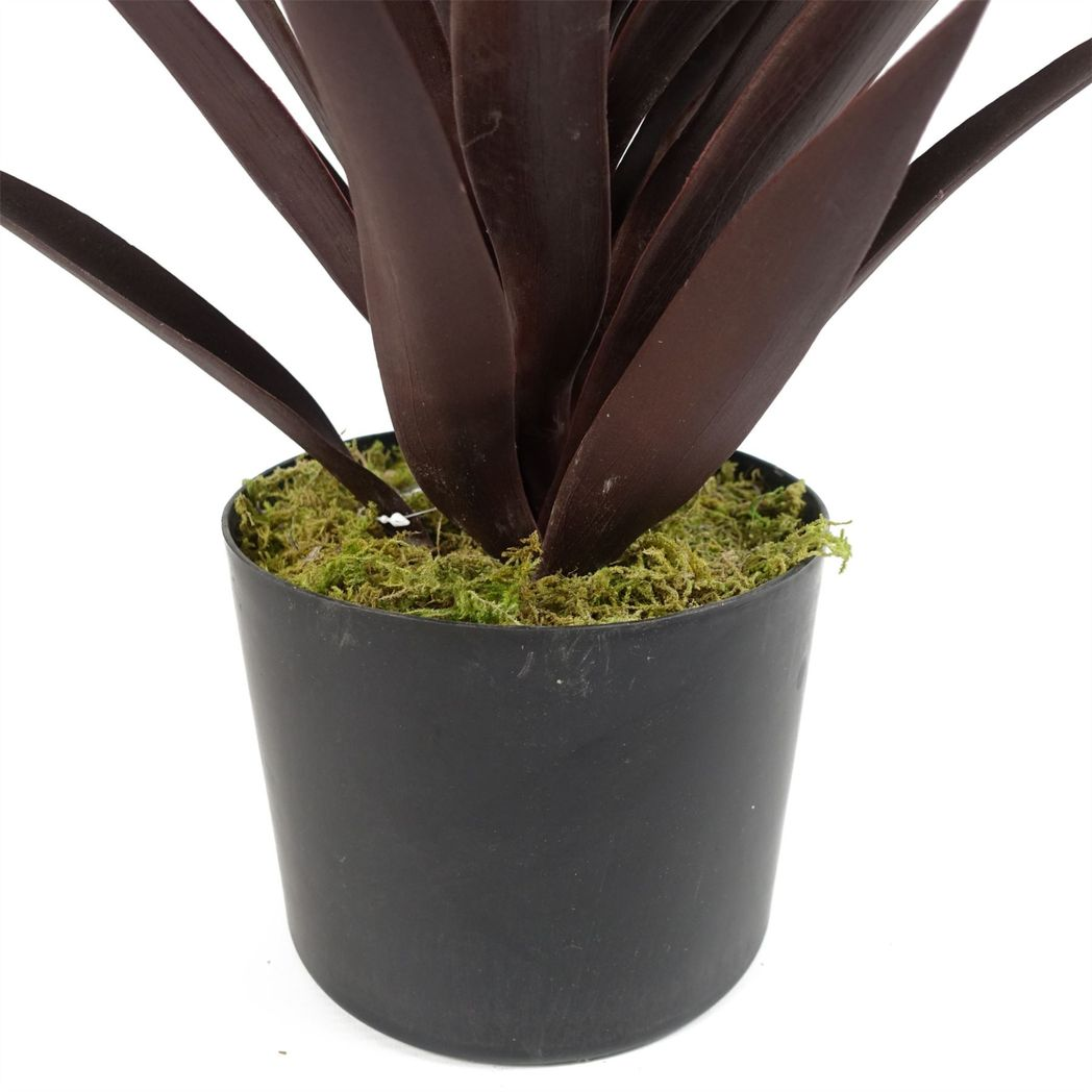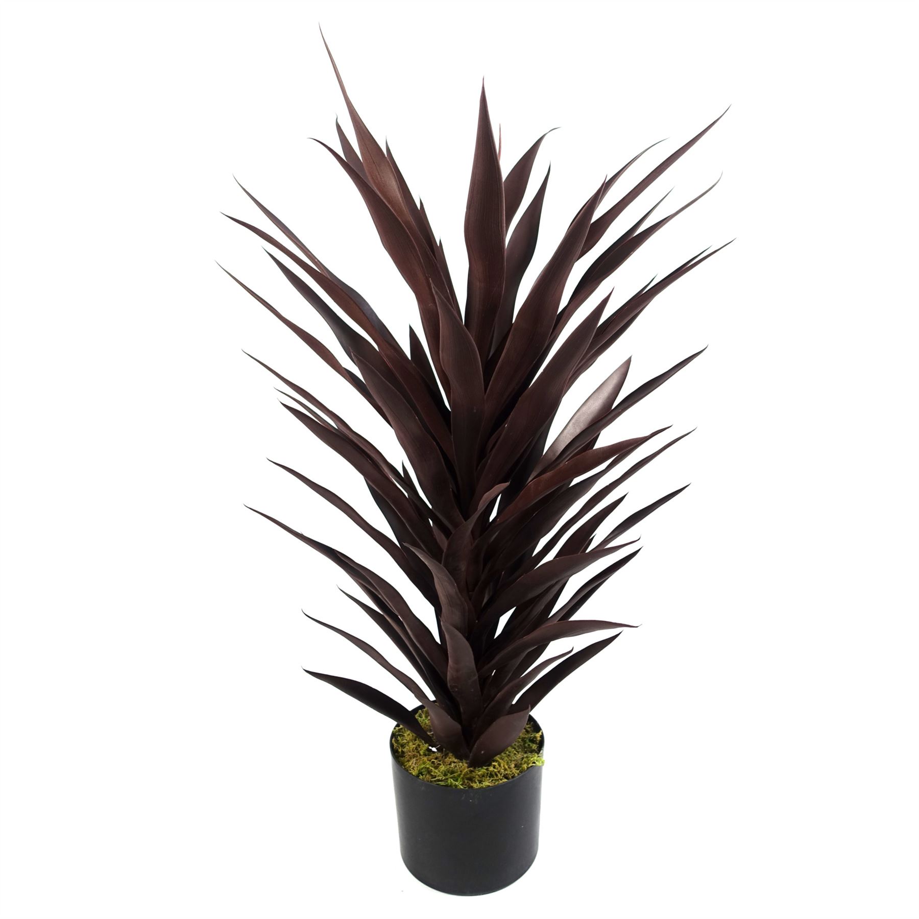A stunning deep crimson Yukka, boasting dimensions of 85cm x 50cm x 50cm as showcased in our exquisite images. Encased in a sleek black plastic pot (measuring approximately 18cm in diameter and 14cm in height), this masterpiece is a true statement piece. With its meticulously arranged plastic leaves, this Yukka requires no further styling. Elevate its grandeur by placing it within a decorative planter and adorning the top with gravel or soil for a truly luxurious touch.