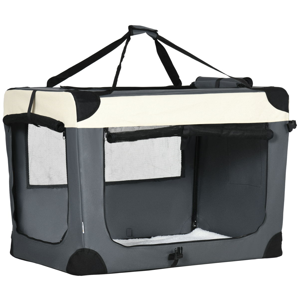 - "91cm Foldable Pet Carrier w/ Cushion, for Large Dogs and Cats - Grey Pawhut"