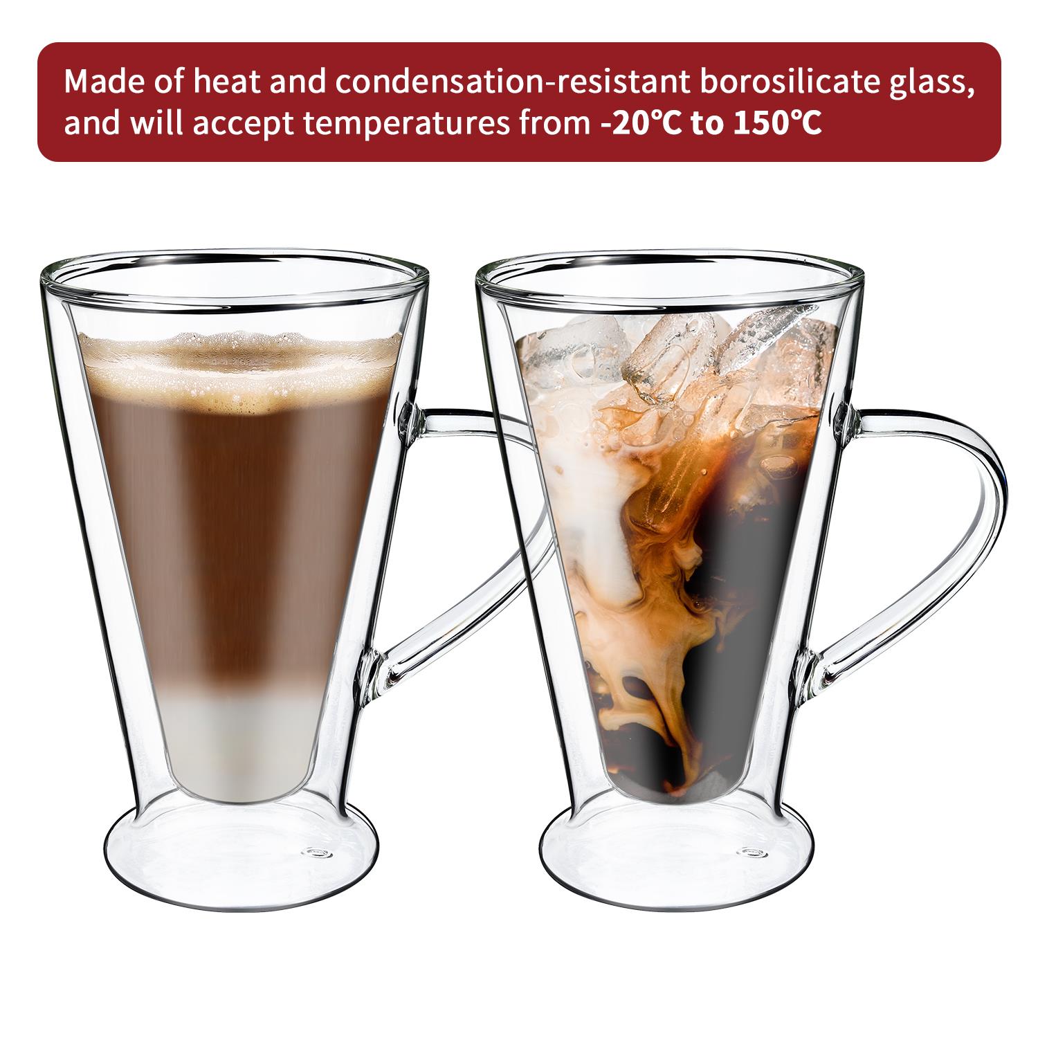 SET INCLUDES: 2 x Double-walled glasses. Please refer to the full description for the exact dimensions of each glass/cup. Perfect sizes for your latte coffee and an elegant way to serve piping hot or iced drinks because they appear to float in mid-air inside the cup. Available in 12 Different Designs you can choose from.