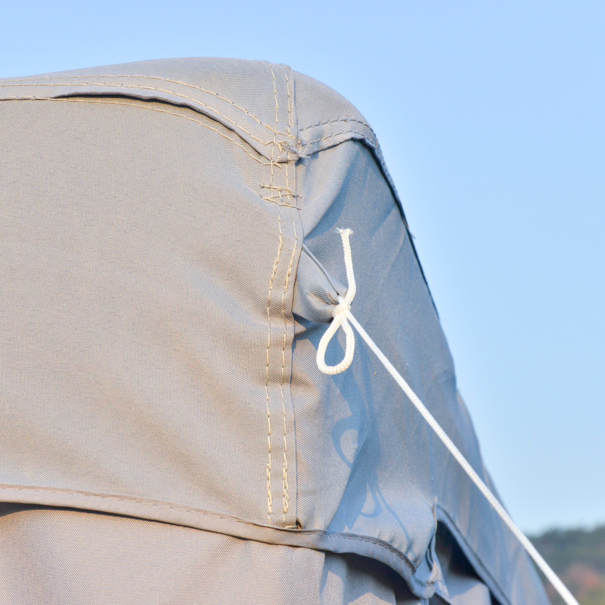 Durable polyester fabric to block harmless UV, ideal to protect you from searing sunlight Well-designed 2 tier roof with mosquito netting, perfect for air circulation and protect against bugs 4 built-in grommets help ensure proper water drainage Tightness adjustable top canopy help ensure proper water drainage Come with mosquito netting, keep you from mosquito and other insects disturbing Powder coated strong metal frame, sturdy enough to provide secure space for gatherings 8 7-shaped stakes and 4 guy ropes included for added stability Intubation connection Note: Please make sure the gazebo will not be left outside under any bad weathers as rains or wind may buckle the roof to destroy it.