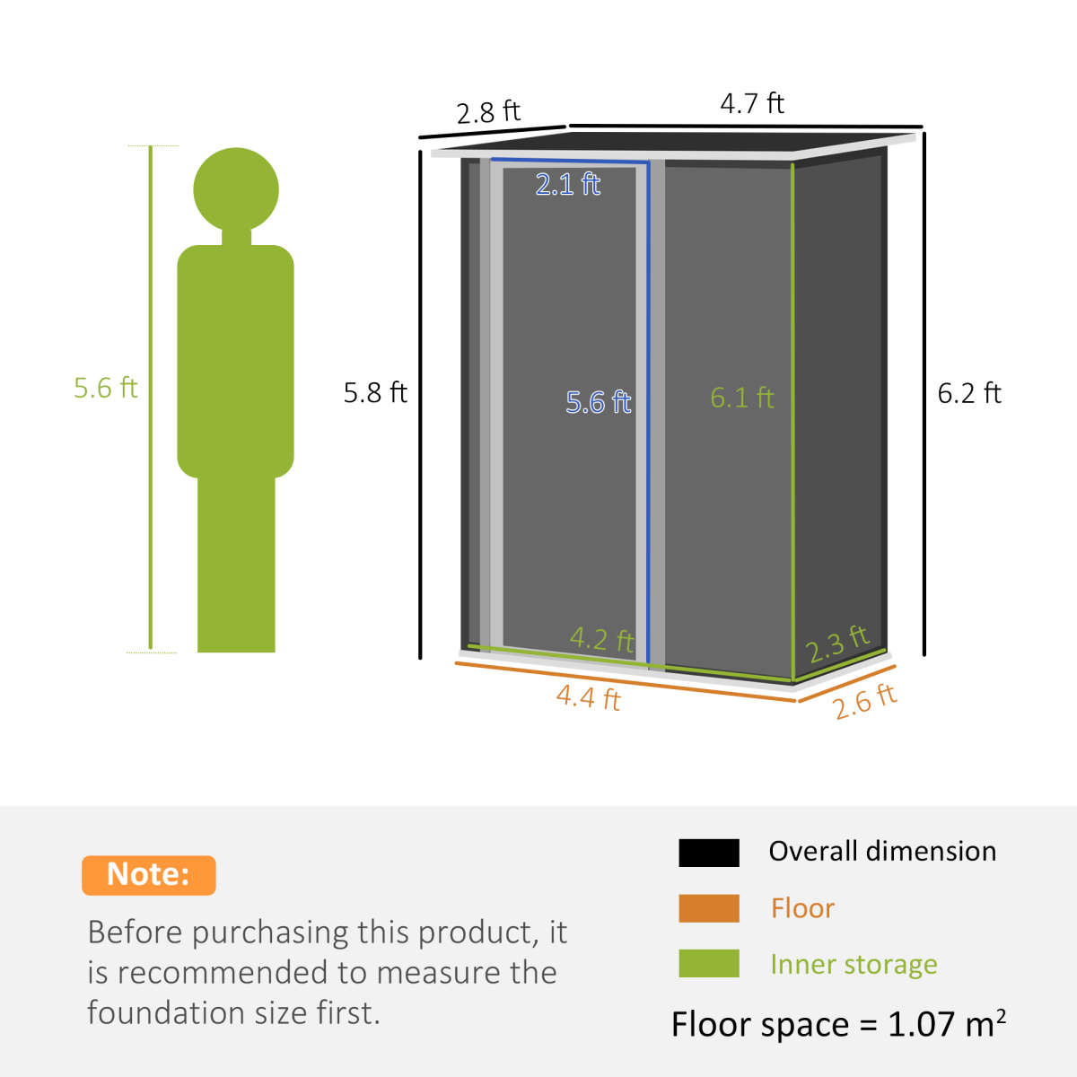 Garden Storage Shed, Sloped Roof, Lockable Door Grey, 142 x 84 x 189cm
