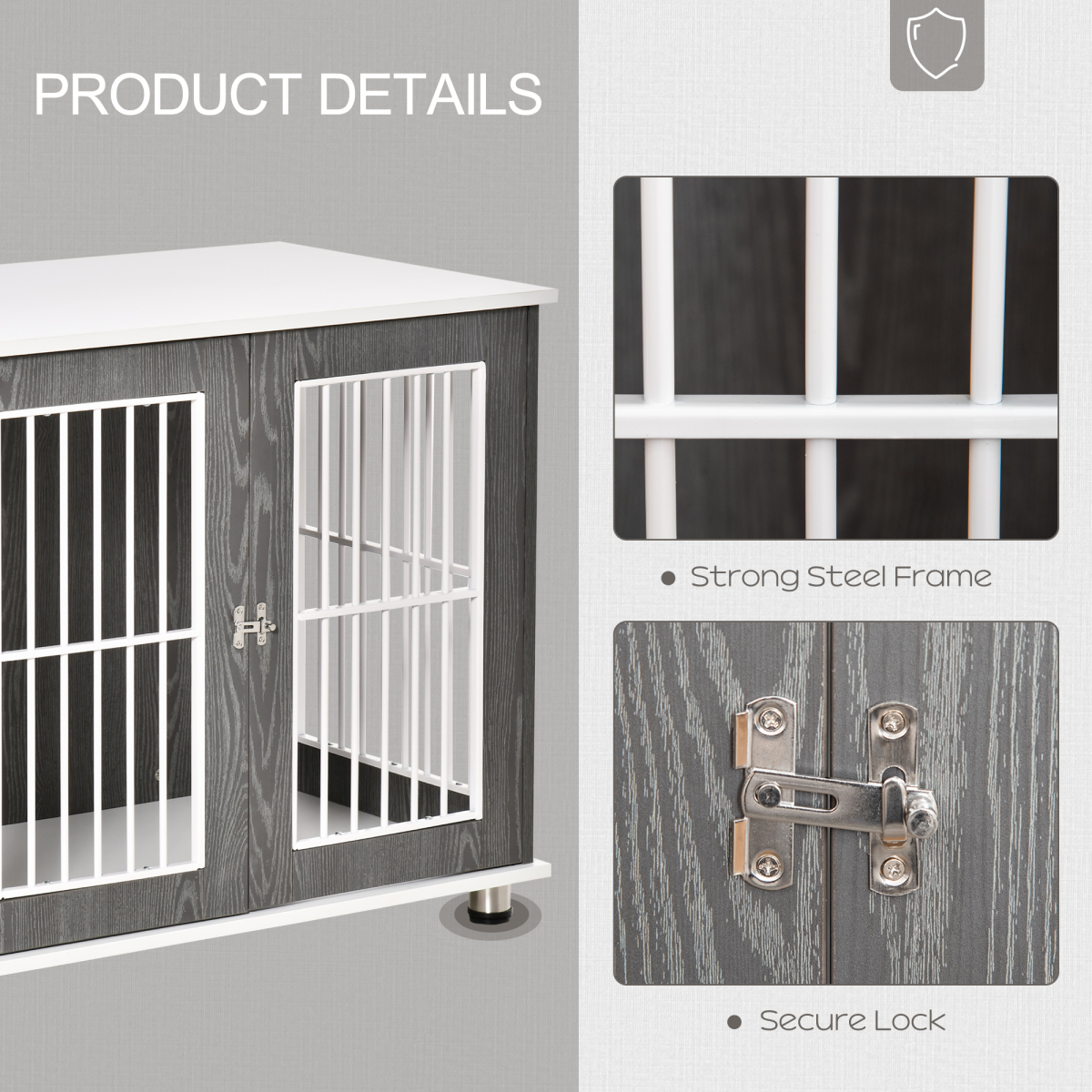 - "Modern Dog Crate Pet Kennel Cage w/ Lockable Door - Grey & White Pawhut"
