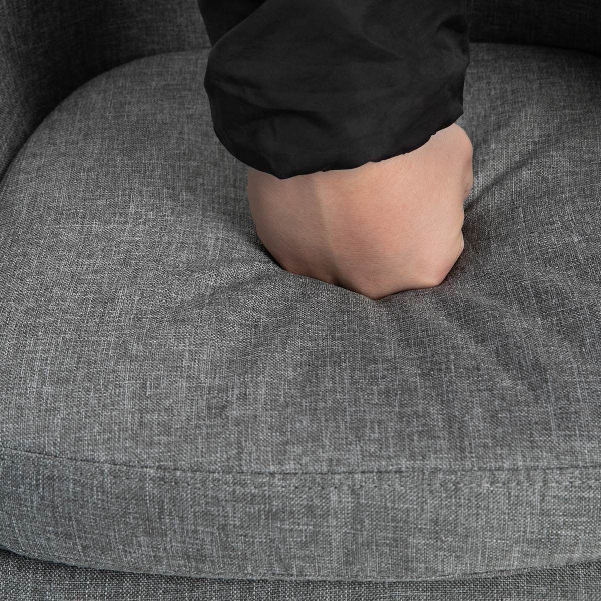 Set of two bar stools: A matching set for your home, in a wide tub design for a smooth and modern look for a beautiful addition to your home.Tall wooden base: Solid wood legs ensures strength and stability. 'A' shape to help keep stable. Bottom footrest for lower body comfort.Comfortable: Combines a wide seat and deep and thick cushions for you to sink in, with a high back and armrests for support.Linen upholstery: Allows your skin to breathe, as well as being easy to clean and keep fresh.Dimensions: 100H x 55W x 48Dcm. Seat: 39W x 37Dcm. Maximum load 120kg. Assembly required.
