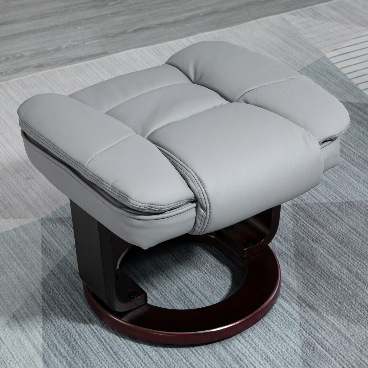 Swivel Manual Recliner and Footrest Set PU Lounge Chair Wood Base, Grey