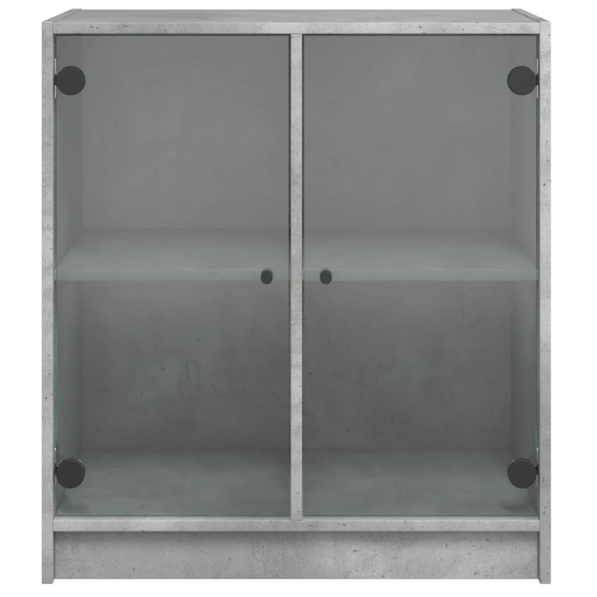 This side cabinet, featuring a timeless look, is meant to be an excellent addition to your home. Durable material: The engineered wood is of exceptional quality with smooth surface and also features strength, stability and resistance to moisture.Ample storage space: The cupboard offers ample storage space for keeping your various daily essentials well-organised and within easy reach.Displaying function: The top of the storage cabinet is great for displaying your decorative items, photo albums or small plants.Practical glass doors: Keep your space clutter-free by hiding small essentials behind the doors of the cabinet. In addition, the glass doors allow you to see inside the storage cabinet to display items beautifully. Warning:To prevent it being overturned, this product must be used with the provided wall attachment device.