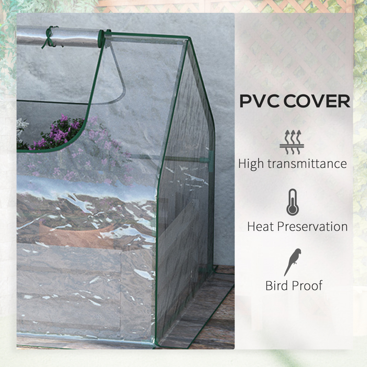 Dual Use: You get a raised planet bed and a garden greenhouse all in one. It's great for growing vegetables, fruit, herbs, and your favorite flowers.Selected Material: The elevated garden planter is made from 0.5 mm thick color steel plate, sturdy and tough, and will not warp as wood does. The greenhouse tent is suitable for constant outdoor use.Plastic Cover: The greenhouse cover for raised garden bed maintains high humidity levels for growing plants and allows nourishing sunlight to pass through, providing an ideal space for your plants to thrive. The 10cm extended edges can be deeply buried in the soil to tighten the small greenhouse cover for more stability.Good Ventilation: This raised garden bed cover features a large roll up window that makes it easy to manage your plants while keeping the inside well ventilated.Greenhouse Information: Overall Dimension: 185L x 95W x 92H cm. Internal Planting Area: 179L x 88W x 29.5H cm. Windproof Level: 4. Assembly required.