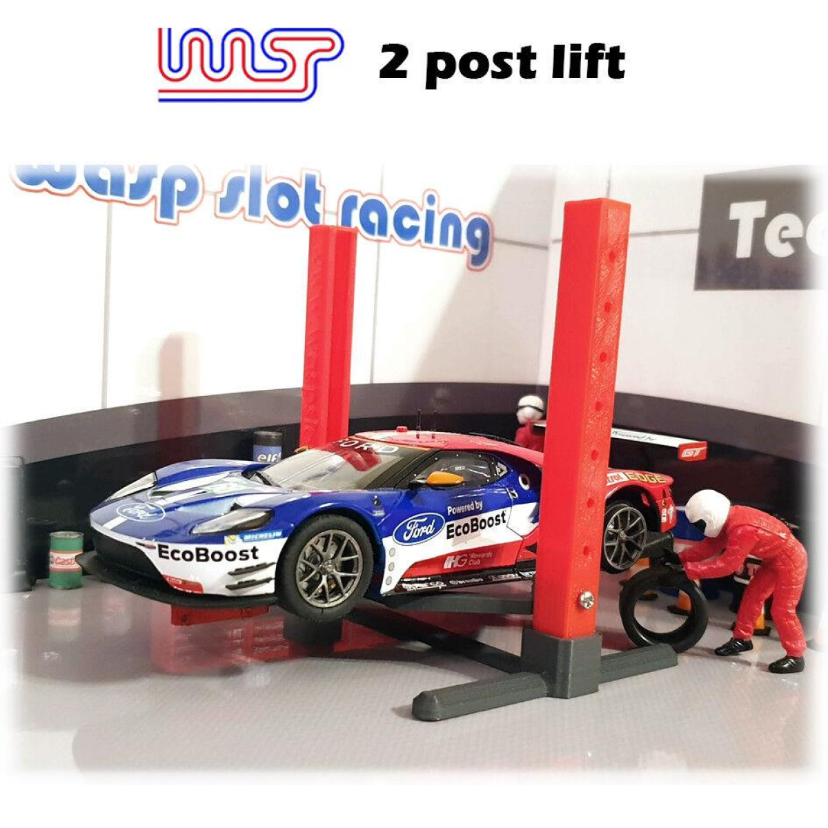 WASP 3D printed 2 post lift 1:32 scale About the items 3D printed in the colour shown and supplied as a kit to assemble. Please see instruction image above Colours may vary slightly between plastic batches. Only lift is included figures and other accessories in the picture are for illustration only Safety Please note these tyres are intended for slot racing purposes only, they are not a toy and should not be used by children under 12 years. They could be a choking hazard if swallowed.