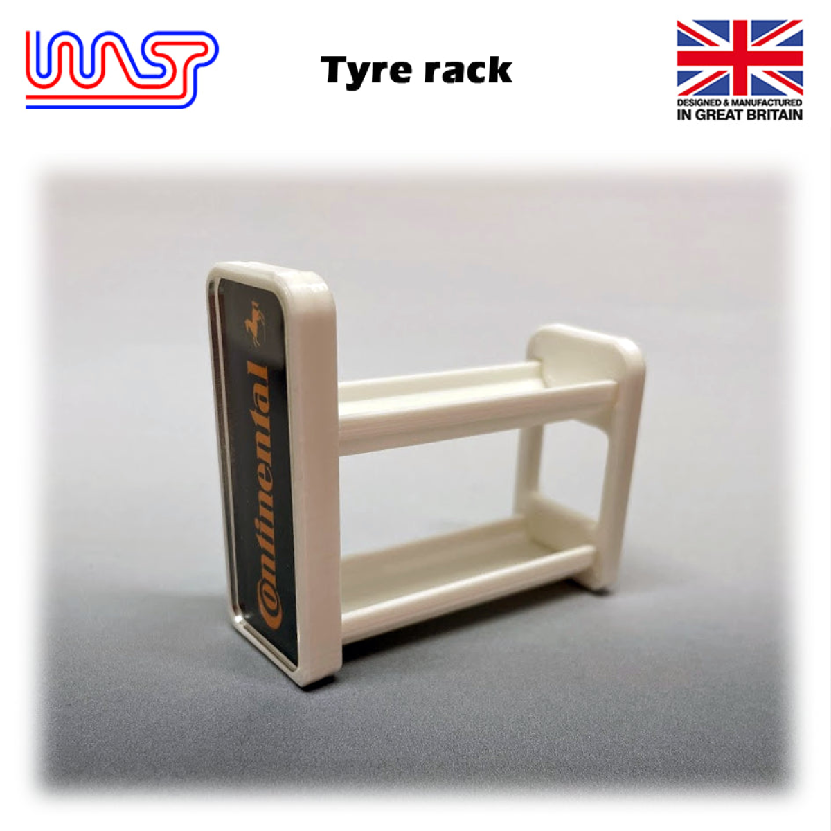 Slot Car Scenery Track Side Tyre Wheel Rack White with Logos 1:32 WASP