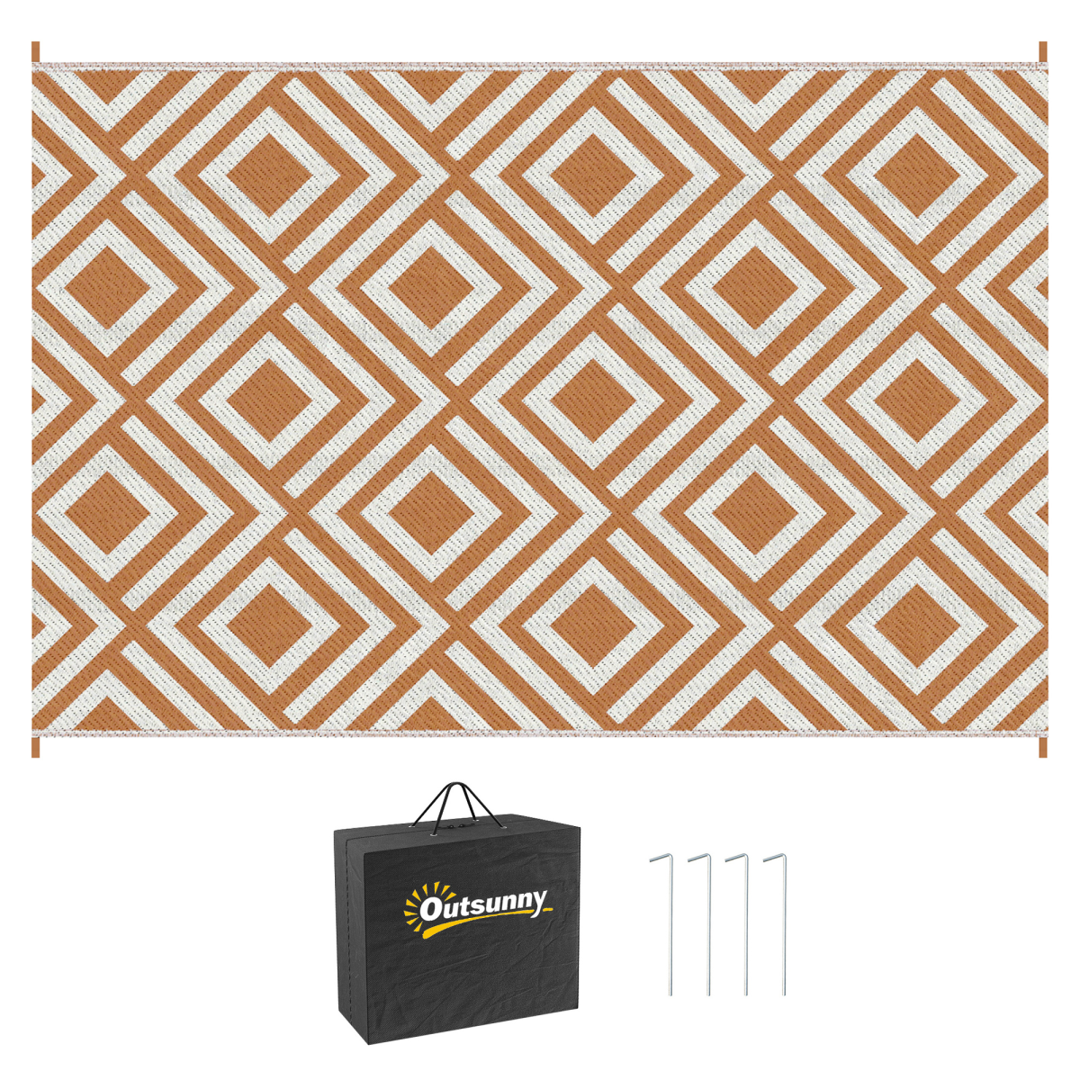Reversible Outdoor Rug W/ Carry Bag for RV Camping Beach, 182 x 274 cm, Brown