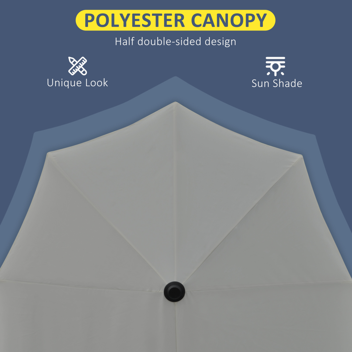HALF-CUT DESIGN, DOUBLE-SIDED CANOPY: Parasol umbrella is specially designed for small garden and outdoor spaces - such as balconies, small patios, front porches and more garden and outdoor spaces. Extended canopy for extra shade.CRANK HANDLE: Easy to open and close the semi parasol canopy: it's effortless. Saves you time for creating much needed shade, more time for you to relax.STEEL FRAME: Strong metal for half parasol to stand steady. Seven ribs connecting frame to canopy for extra support.PARASOL BASE INCLUDED: Weights are required however to keep this outdoor umbrella standing steady. Recommended to purchase our special Outsunny weighted plates: ASIN B00BJBV55I, SKU 01-0221.DIMENSIONS: 2.4H x 2L x 1.9Wm. Pole: 38mm. Base: 8.5H x 80L x 36Wcm. NOTE: Do not leave standing in heavy weather conditions.