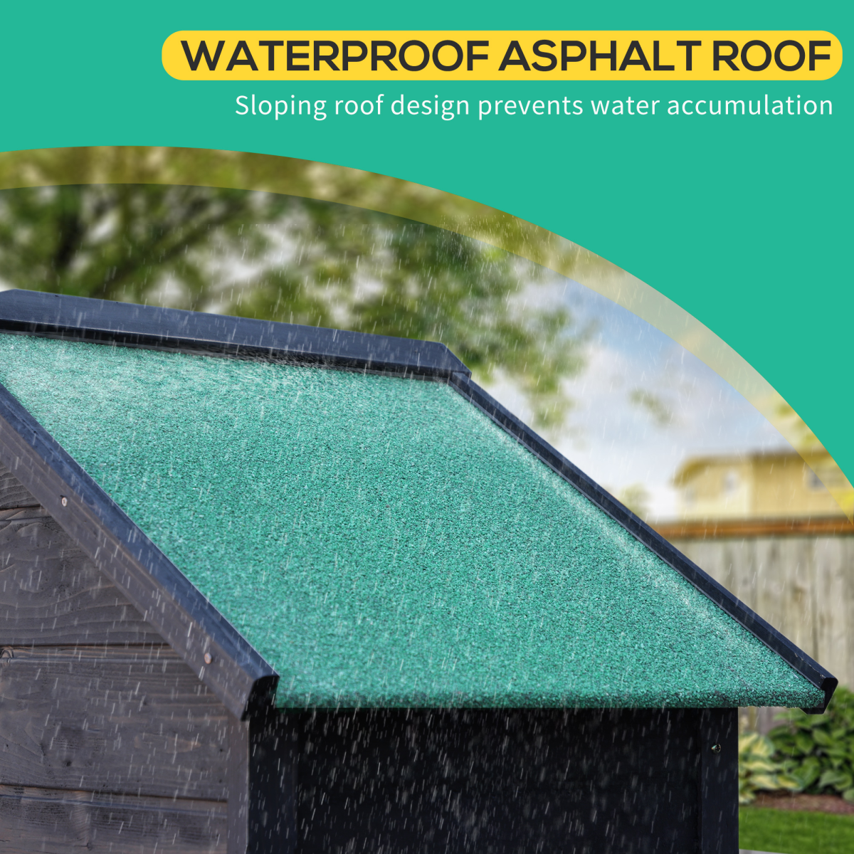 - Sloped roof to prevent water build-up, with a covering to help stop liquids seeping through