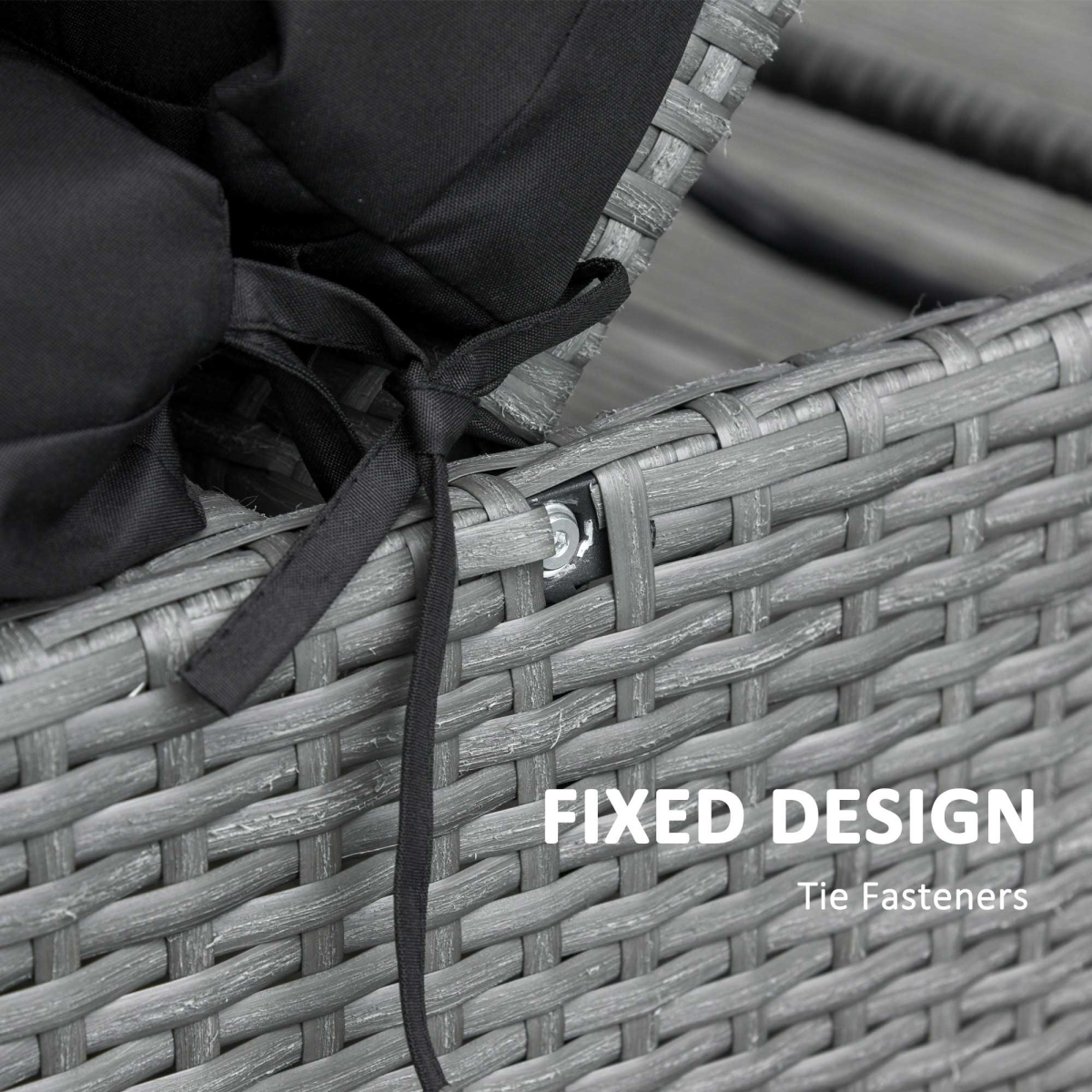 Set of 2 Lounger Cushions Deep Seat Patio Cushions with Ties Black
